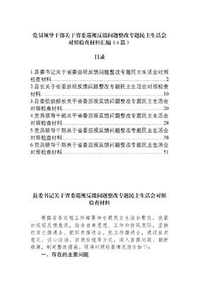 (6篇)党员领导干部关于省委巡视反馈问题整改专题民主生活会对照检查材料汇编.docx