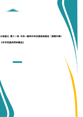 2026年教案课件-中华民族共同体概论- 第十一讲 中华一家和中华民族格局底定(清朝中期)-新版.docx