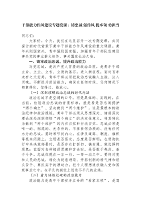 干部能力作风建设专题党课:铸忠诚+强作风+提本领+勇担当.docx