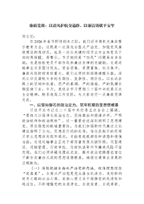 廉政党课:以清风护航交通路,以廉洁铸就平安年.docx