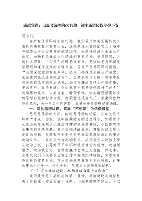 廉政党课:以赶考清醒的执着劲,筑牢廉洁防线守护平安.docx