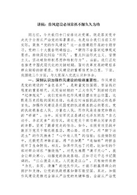 讲稿:作风建设必须常抓不懈久久为功.docx
