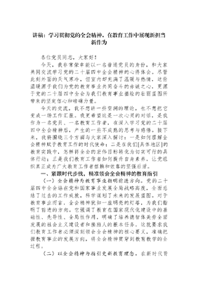 讲稿:学习贯彻党的全会精神,在教育工作中展现新担当新作为.docx