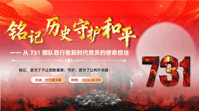 一、隐秘的魔窟,烟里带来死人气息——从731部队罪行看新时代党员的使命担当主讲:文可居文库时间:202X.XX.XX铭记,是为了不让悲剧重演;守护,是为了让和平永续前言/PREFACE1932年2月5日,农历辛未年的最后一天——除夕,对哈尔滨人来说,注定是一个永远不能忘记的日子。这一天本应是团圆的日子,彼此祝福的家人一起吃年夜饭,在噼里啪啦的鞭炮声中辞别旧岁。每家门柱上都张贴着象征祝福的春联,门面上粘贴尉迟恭和秦琼画像,他们被称为门神,是传统中国的守护者。然而守护这座城市近千年平安无恙的门神却在这个不同寻常的除夕没能阻挡住入侵者……这座曾被誉为东方小巴黎的城市所遭遇的不幸,不仅是一个民族的创痛,更预示着一场人类文明史上罕见的医学伦理崩塌。所幸,历史真相如同被深埋地下的种子,终将在时间的雨水中破土而出,发出不容忽视的韧芽。前言/PREFACE2025年7月,上海交通大学战争审判与世界和平研究院研究员杨彦君的最新研究著述《731:医学的沦陷》由中华书局出版。作者本人是侵华日军第七三一部队罪证陈列馆特聘研究员,也是一位1979年出生于黑龙江宾县的本土学者。9月18日上午9时18分,《731:医学的沦陷》新书发布会在哈尔滨举行。杨彦君在会上指出:七三一部队绝不是单纯的军事机构,它是一个利用医学、生物学等科学手段,以人体实验和细菌战为主要内容的反人类犯罪集团。其本质是医