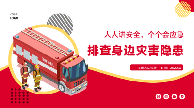 人人讲安全、个个会应急排查身边灾害隐患主讲人:文可居时间:202X.X前言PREFACE大家好!大家都知道,每年5月12日至18日是防灾减灾宣传周。今天,我将围绕人人讲安全、个个会应急——排查身边灾害隐患这一主题,与大家一起探讨如何在新时代背景下,以党的坚强领导为核心,推动防灾减灾工作深入人心,切实增强全社会的安全意识和应急能力。目 录CONTENTS认清形势,提高政治站位,深刻理解防灾减灾的重要意义01强化责任担当,构建全民参与的防灾减灾新格局02聚焦基层一线,筑牢防灾减灾的第一道防线03坚持党建引领,凝聚防灾减灾的强大合力04认清形势,提高政治站位,深刻理解防灾减灾的重要意义01国家安全与防灾减灾的关系国家安全是民族复兴的根基,社会稳定是国家强盛的前提。防灾减灾救灾工作作为国家安全体系的重要组成部分,关系到人民群众的生命财产安全,关系到经济社会发展的大局稳定。全球极端天气频发对防灾减灾工作的影响近年来,全球极端天气频发,自然灾害呈现出突发性、复杂性和叠加性的特点。我国作为世界上自然灾害最为严重的国家之一,地震、洪水、台风、泥石流等灾害时有发生,对人民生活和社会运行构成严峻挑战。0102新时代背景下防灾减灾的必要性防灾减灾作为政治任务的重要性我们要从讲政治的高度,把防灾减灾作为一项重要的政治任务来抓,牢固树立人民至上、生命至上的理念。未雨绸缪、防患于未然的具体体现做到未雨