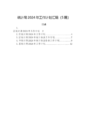 统计局2024年工作计划汇编(5篇)目录1.区统计局2024年工作计划22.区统计局2024年工作计划.43.区统计局2024年统计执法工作计划..74.市统计局2024年统计执法检查工作计划.95.县统计局2024年工作计划12区统计局2024年工作计划2024年XX区统计局将提高统计数据和工作质量,要加大对统计人员的培养力度,努力提高基层、企业统计人员素质,建立一支思想过硬,技术精湛的现代统计队伍,提高统计工作质量和统计数据质量。(一)持之以恒加强党的建设。深入贯彻落实XXX新时代中国特色社会主义思想和党的XXX精神,坚决贯彻执行上级决策部署,严格落实三会一课等组织生活制度,深化意识形态工作和基础理论教育。结合主题教育及时跟进学习XXXXXX重要讲话精神及省、市、区委决策部署要求,切实把思想和行动统一到贯彻落实到XXXXXX对统计工作的指示精神上来。(二)持续推动统计法治建设。一是加强法治宣传,营造良好氛围。依托宪法日、《统计法》颁布纪念日、统计开放日等,加强统计法治宣传力度。二是持续贯彻落实《意见》《办法》《规定》省、市、区实施意见,进行再学习、再认识、再深化,牢固树立统计领域数字造假防控意识。深入贯彻落实防范和惩治统计造假、弄虚作假责任制,建立健全各专业数据质量核查制度,认真自查、立行立改。三是加强统计执法检查和统计违法案件查处力度,积极协助开展统计执法双随机检查,充分发挥典型案例警示教育作用,努力形成不敢、不能、不想统计造假的压倒性态势。(三)继续优化统计分析能力。一是加强监测分析。配合区委、区政府及有关部门认真做好测算及分析。强化数据监测和分析,加快微观情况探究和发展趋势研判,加强经济形势动态监测预警分析,做精做优统计产品,为区委、区政府决策部署提供精准依据;二是强化业务培训。针对工业总产值、商品销售额、本年完成投资、服务业应交增值税等易错指标,加强相关统计专业的业务培训及下沉指导,进一步加大数据审核把关力度,着力提高企业基础数据采集、填报的规范性、严谨性;三是加强协调配合,继续加强与职能部门的协调配合,形成合文可居文库——海量学习资料,手机电脑均可下载www.wenkeju.com力构筑统计数据质量防线,坚决杜绝违法干预。(四)继续全力以赴做好五经普工作。紧跟国家、省、市第五次全国经济普查的工作步伐,严格执行普查方案,强化责任意识,加强分工协作,稳步推进各阶段工作任务,认真做好普查组织领导、经费落实、正式登记、数据比对等工作任务。认真落实党中央、国务院关于统计改革发展决策部署,坚持实事求是、改革创新,科学设计、精心组织,周密部署、依法实施,确保我区第五次全国经济普查数据真实准确,全面客观反映我区经济发展状况,全力以赴打赢第五次全国经济普查这场硬仗。区统计局2024年工作计划2024年,XX市XX区统计局将继续以XXX新时代中国特色社会主义思想为指导,全面贯彻落实党的XXX精神,加快推进统计现代化改革,认真做好第五次全国经济普查,着力提升统计监测服务水平,为XX经济社会高质量发展贡献统计力量,重点抓好以下工作:(一)坚持党的全面领导,以党建引领业务开展。一是以深入开展学习贯彻XXX新时代中国特色社会主义思想主题教育为统领,全面系统学习党的XXX精神,坚持读原著、学原文、悟原理,从政治上学、政治上看、政治上悟,把XXX新时代中国特色社会主义思想的世界观、方法论和贯穿其中的立场观点方法领会深、领会透。二是加强党建引领作用,落实全面从严治党,压实意识形态工作责任制,创新工作思路,主动作为狠抓落实。三是抓实党建工作。加强支部建设,认真落实三会一课、主题党日、组织生活会等工作。(二)严格落实普查方案,做好普查登记工作。按照第五次全国经济普查的总体部署,组织做好正式普查登记工作,抓好数据审核,确保数据质量。积极加强与市监、税务等部门对接,实现部门深度参与。组织开展形式多样的普查宣传活动,动员广大普查对象依法配合普查、全社会积极参与调查,为普文可居文库——海量学习资料,手机电脑均可下载www.wenkeju.com查工作顺利开展创造良好社会氛围。采取线上线下联动、分层分级组织的形式,加强两员培训,全面提升两员的业务能力和实操能力,推动五经普工作高质高效开展。(三)加强经济运行监测,提高统计服务质量。积极谋划,加强对主要经济指标、重点行业、重点企业等关键领域的预警分析。在年度经济发展重要节点,围绕GDP核算基础指标进行测算,重点关注有下滑趋势的指标,加强调研分析,对重点指标运行基本情况、存在问题、建议及下步措施等形成综合分析,提高统计分析信息质量,更好服务