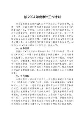 镇2024年度审计工作计划为全面贯彻落实党的XX大和中央经济工作会议精神,完整、准确、全面把握扎实推进中国式现代化对审计工作提出的新要求新任务,按照市、区委及上级审计机关的部署要求,立足经济监督定位,聚焦财政财务收支真实合法效益、审计主责主业,依法全面履行审计监督保障职责,更好发挥审计在党和国家监督体系中的重要作用,以高质量审计服务XX现代化建设发展大局。我办现结合XX镇内部审计制度及具体情况,制定2024年XX镇内部审计工作计划,具体如下:一、指导思想坚持以XXX新时代中国特色社会主义思想为指导,深入贯彻XXXXXX对审计工作的重要指示和批示精神,加强内部审计机构建设,创新内部审计理念,完善内部审计制度,构建集中统一、全面覆盖、权威高效的审计监督体系,充分发挥内部审计在规范管理、防范风险和完善治理等方面的基础性、源头性自我监管作用,实现内部审计在加强权力制约、构筑惩防体系方面的监督保障功能,最大程度服务我镇经济社会平稳健康发展。二、工作目标为贯彻落实《浦东新区关于进一步加强内部审计工作的意见》(浦委办发〔2021〕74号)精神,结合我镇实际,2024年制定八大类工作:一是组织实施本级政府全口径预算管理和执行情况,提高财政资源统筹力度,推动财政政策加力提效;二是组织实施镇属单位年度财务收支审计,促进完善镇级财务管理制度,提升财务管理规范化水平;三是组织实施事业单位、村(居)、公司等领导干部离任经济责任审计,加强党政领导干部的管理和监督,强化权力运行过程监督全覆盖;四是组织实施政府投资建设项目审计,对政府投资建设项目的总概算、预算的执行和调整情况、年度预算的执行情况和年度决算、单项工程结算、项目竣工决算,进一步进行审计监督;五是开展2023年度财务决算报表审计;六是开展2023年度工会经费使用情况审计、XX镇2016-2023年度村集体经济组织收益分配专项审计以及集体企业资产清理专项审计;七是继续做好2023年度审计整改跟踪回访工作;八是积极组织开展审计培训工作。三、主要任务2024年共安排138项审计项目,其中:2023年度财政预决算专项审计1项(全口径预算管理和执行情况,涉及政府2个专户、事业单位7家、综合行政执法机构1家)、财务收支审计15项、镇管领导干部任期经济责任审计8项、政府投资建设项目工程竣工审计100项、2023年度财务决算报表审计9项、专项检查3项(2023年度工会经费使用情况审计1项、XX镇2016-2023年度村集体经济组织收益分配专项审计、集体企业资产清理专项审计1项)、审计整改情况跟踪审计1项、审计培训1项。具体内容如下:(一)不断提升财政预决算审计质效2024年,计划对政府2个账户、7家事业单位、1家综合行政执法机构进行2023年度财政预决算专项审计。着眼小切口发力,加大对民生资金使用绩效的延伸审计力度,重点关注民生资金管理情况及使用效果,着力提高财政资金的绩效管理水平,促进民生领域重大政策落实落地。着力打破财政预决算审计思维定式,坚持研审结合,以研促审,不断创新审计方式方法,助力镇本级财政预决算审计提质增效。(二)开展财务收支情况审计充分发挥内部审计纠错防弊的作用,切实加强对财政财务收支和有关经济活动的审计,保障公共资金、国有资产、国有资源的安全完整和经济活动的真实、合法、有效。2024年对上海市浦东新区XX镇居家养老服务中心等15家单位进行2022—2023年度财务收支情况审计。重点审计财经法纪及镇党委、政府、纪委制定的各项规章制度执行情况,专项资金的管理,集体资产处置、债权债务管理等情况,完善推动高质量发展的财政制度体系,为全镇各项事业高速发展保驾护航。(三)开展镇管领导干部经济责任审计重点关注领导干部贯彻执行中央、市、区、镇决策部署落实及相关政策措施、发展规划的制定、执行和效果,财政财务收支和经济运行风险防范,以及落实党风廉政建设责任和廉洁从政规定等情况,揭示贯彻执行决策部署不到位、重大经济事项未经决策程序或违规决策、内部控制管理不规范、经济风险防范不到位、国有资产管理不规范等问题。今年拟开展8个单位,重点审计行政领导人员任职期间所在单位的各方面情况,促进领导干部进一步履职尽责、担当作为、廉洁用权、干净干事,织牢权力运行的制度笼子。(四)加大对政府投资建设的基建项目审计力度着力关注招投标、物资采购、投资控制、土地征用、环境保护、工程质量等方面的突出问题,加大对政府投资的基础设施等重点政府投资项目进行跟踪审计。2024年拟安排审计基建项目100项,分别为环境工程审计、各村道路提升工程审计、各公司工程审计等。通过加大审计力度,进一步促进投资管理水平和投资效益的提高,促进政府重大项目和事项的顺利完成,有效提高固定资产投资绩效。(五)开展2023年度财务决算报表审计2023年度财务决算报表审计