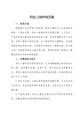 特色小镇申报方案一、背景介绍随着城市化进程的不断推进,特色小镇成为了当前国家发展的一个热点话题。特色小镇指的是在地理位置、人文历史、产业特色等方面具有独特特色的小镇,通过资源整合和产业发展,实现小镇的升级和发展。为了推动特色小镇建设,各级政府纷纷推出申报方案,以鼓励和支持特色小镇的发展。本文将介绍一种典型的特色小镇申报方案,帮助申报者了解特色小镇建设的相关内容和申报流程。二、申报目标与理念特色小镇申报的目标是打造一个充满独特魅力和创新活力的小镇,通过整合资源、发展产业、提升居民生活质量等方式,促进小镇经济的升级和社会的可持续发展。申报的理念包括以下几个方面:1.特色与创新:小镇应具有独特的地理位置、文化历史或产业特色,通过创新思维和探索性发展,打造出与众不同的小镇形象。2.可持续发展:特色小镇的发展应符合可持续发展的原则,注重资源的合理利用和环境的保护。3.产业集群:小镇应以发展产业为核心,通过打造产业集群,实现小镇经济的快速增长和就业机会的增加。4.社区参与:小镇建设过程中应注重社区居民的参与和意见征集,形成共建共享的小镇发展格局。三、申报内容与流程1.概念规划设计申报者需要对特色小镇的概念进行规划设计,包括小镇的定位、发展方向和重点项目等。概念规划需要考虑小镇的特色与优势,明确小镇的发展目标和规划蓝图。2.基础设施建设特色小镇申报需要关注基础设施建设,包括交通路网、供水供电、环境治理等方面。申报者需提供详细的基础设施建设方案,确保小镇能够满足居民和产业的需要。3.产业发展计划特色小镇的核心是产业发展,申报者需要提供详细的产业发展计划。该计划应包括产业定位、发展方向、产业链条构建、扶持政策等内容,帮助小镇实现特色产业的创新发展。4.人才引进和培养计划特色小镇的发展需要有一支高素质的人才队伍,申报者需要提出人才引进和培养计划。该计划应注重培养本地人才和引进外部高级人才,保障小镇人力资源的丰富和可持续发展。5.社区建设与居民服务申报者需要关注特色小镇的社区建设和居民服务。社区建设方案应注重社区功能和居民生活质量的提升,通过公共设施建设和社区活动等方式,增强小镇的凝聚力和归属感。6.环境保护与文化传承特色小镇申报需要关注环境保护和文化传承问题。申报者应提供环境保护方案和文化传承计划,保护和传承小镇的自然环境、文化遗产和历史传统。7.财务规划与资金筹措特色小镇的建设需要大量资金支持,申报者需要提供财务规划和资金筹措计划。该计划应明确资金来源、筹措方式和使用计划,保证小镇建设的资金保障和可持续发展。四、申报评审与支持政策特色小镇申报完后,将进行评审和筛选。评审程序由相关部门组织,采用专家评审和综合评定相结合的方式,评选出符合条件的特色小镇建设项目。对于入选的特色小镇项目,将根据申报计划给予一定的政策支持,包括财政资金补贴、税收优惠、土地政策扶持等。五、总结与展望特色小镇申报方案是特色小镇建设的重要一环,通过详细的申报内容和流程,可以帮助申报者全面了解特色小镇建设的要点和相关政策。未来,特色小镇建设将成为推动地方经济发展和提升城乡居民生活质量的有效措施,可望在全国范围内得到进一步推广和应用。