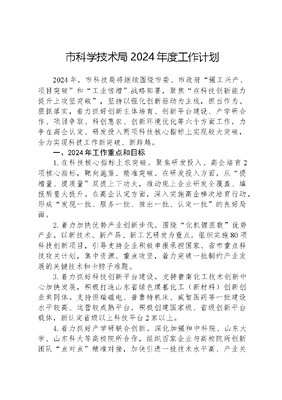 市科学技术局2024年度工作计划2024年,市科技局将继续围绕市委、市政府强工兴产、项目突破和工业倍增战略部署,聚焦在科技创新能力提升上攻坚突破,坚持以强化创新驱动为主线,担当作为、狠抓落实,着力抓好创新主体培育、创新平台建设、产学研合作、项目争取、科创惠农、创新环境优化等六个方面工作,力争在高企认定、研发投入两项科技核心指标上实现较大突破,全力实现科技工作新突破、新跨越。一、2024年工作重点和目标1.在科技核心指标上求突破。聚焦研发投入、高企培育2项核心指标,靶向施策、精准突破。在研发投入方面,从提增量、提质量双提上下功夫,推动规上企业研发全覆盖、填报质量大提升。在高企认定方面,深入实施高企梯次培育行动,形成发现一批、服务一批、推出一批、认定一批的良好局面。2.着力加快优势产业创新步伐。围绕化机锂医数优势产业,以新技术、新产品、新工艺研发为重点,组织实施80项科技创新项目,引导支持企业积极申报承担国家、省市重点科技攻关计划,集中资源、重点攻坚,着力突破一批制约产业发展的关键技术和卡脖子难题。3.着力抓好科技创新平台建设。支持鲁南化工技术创新中心加快发展,积极打造山东省绿色煤基化工(新材料)创新创业共同体。支持恒瑞磁电、普鲁特机床、威智医药等一批建设水平较高、运营较成熟平台,积极创建国家级、省级创新平台载体,新认定省级以上科技平台2家以上。4.着力抓好产学研联合创新。深化加强和中科院、山东大学、山东科大等高校院所合作,组织百家企业与高校院所创新团队点对点精准对接,加快引进一批技术水平高、产业关联强的科研成果落地转化。全力抓好招才引智工作,创新引进形式,加快引进培养一批高层次科技人才。5.着力抓好创新环境优化。全力保障落实研发费用加计扣除、高新技术企业税收减免、科技创新券、科技成果转化贷款等科技普惠政策,拓宽企业科技投入渠道,激发创新动力活力。二、工作创新点争创省级高新技术开发区。以高铁新区为主体,对照省级高新技术开发区创建有关定量指标和定性要求,认真分析、系统梳理,理清创建思路、明晰工作方向,会同有关部门、镇街,从园区发展规划、高新产业壮大、创新体系建设、机制体制完善等方面,精准发力,对标补齐短板弱项,全力打造成为全省一流的创新驱动发展示范区、高质量发展先行区。