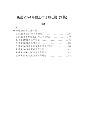街道2024年度工作计划汇编(9篇)目录1.XX街道2024年工作计划22.XX街道2024年工作计划..63.XX街道办事处2024年工作计划.104.街道2024年工作计划.165.街道2024年工作计划.296.街道2024年政务信息公开工作计划.387.街道2024年重点工作计划418.街道办事处2024年工作计划.449.街道办事处2024年工作计划.54XX街道2024年工作计划XX街道将全面学习贯彻落实党的XX大精神,深入践行严真细实快的工作作风,紧盯重点领域,雷厉风行抓落实、久久为功求成效,昂扬志气、勇毅前行,为全面建设繁荣美丽幸福的现代化国际城区贡献XX力量。(一)抓好干部队伍建设,形成强大合力。一是持续巩固主题教育学习成果。深入学习XXX新时代中国特色社会主义思想、党的XX大及XXXXXX关于基层治理的重要论述,坚持把学懂弄通做学习贯彻XXX新时代中国特色社会主义思想主题教育作为首要政治任务,在学思用贯通、知信行统一上下功夫,着力从思想体系上研机析理,从精髓要义上深刻领悟,从实践要求上准确把握。二是强化党风廉政监督。不断强化政治监督,开展常态化日常监督,持续提高街道社区干部职工遵规守纪意识。三是持续实施清锐先锋干部培养计划,推行导师帮带+学员研学模式,举办街道讲堂能力提升分享会,组织年轻干部与辖区企业建立为企服务联络员制度,赋能年轻干部成长成才。(二)突出党建引领基层治理,构建共享共治新格局。一是持续深化党建引领一网治理强基工程,通过强体系、聚合力、显特色,进一步推动基层治理提档升级、为民服务提质增效。二是坚持党建引领实施红色领航行动,立足园区、商会、物业等主体,成立红引擎联盟,联动红色园区联盟、红色商会联盟、红色物业联盟,创新推广联动赋能共治共享党建模式,构筑共商共治共享的基层治理格局。三是创新党建+工作载体,系统打造红引擎联盟,打造中泰信1956产业园党建网红打卡基地,形成基层党建特色亮点品牌。四是加强短板意识和创新意识。补齐短板,努力把党的理论、路线、方针和政策的宣传教育与业务工作紧密结合起来,注重人文关怀和心理疏导,使精神文明建设工作做到入情入理、潜移默化。五是建立党建+党员+社区资源共享数据库,建设7个标杆暖新驿站、3个就享家服务站,构建1+7+3+N服务互动体系,推进社区党群服务中心提质升级,争创青岛市五星级党群服务中心。(三)持续优化营商环境,助推经济高质量发展。一是提高为企业服务水平。加强与企业的沟通联络,开展政策送上门服务,加大政策宣传,对于新符合政策条件的企业,及时对接帮助企业尽早享受政策优惠,提高企业归属感和满意度;强化服务意识,将优化营商环境作为一号工程,收集企业诉求,建立问题清单,开展重点企业走访活动,召开企业座谈会,建立妥善处理问题机制,搭建政企服务连心桥,为企业做大做强保驾护航。二是全力以赴完成年度经济指标。通过提高服务企业水平、多方挖掘信息资源等途径,完成财政收入、招商引资等各项任务。及时关注项目纳统入库,对于可达限入库企业及时提报入库材料,确保应统尽统;积极对接项目信息,掌握辖区招商资源情况,做好资源整理推介,为大项目引进做好信息推送;根据园区楼宇实际情况匹配合适项目,做好政务服务,确保项目资源均衡发展。三是培育示范典型,促进深度融合。以RCEPXX街道服务中心作为新阵地,新招引更多企业项目加入RCEP街道商业圈,联合青岛海关、税务、贸促会、商务等多部门为企业提供更多政策培训、服务,切实增强RCEP政策红利助企惠民。(四)切实加强基层治理,提升居民生活质量。一是全面加快城市更新建设。按时间节点推进2024年老旧街区改造工程,积极探索推行党建引领下的大物管机制,发挥物业服务企业精细化、专业化、智能化优势,实施片区物管,提升开放式小区管理水平,做好老旧街区改造后半篇文章;2024年底前完成海燕广场等四处城市微更新项目。二是全面提升城市环境品质。锁定七个洁净环境卫生主战场,攻坚建筑垃圾规范化城乡环卫一体化重点阵地,持续深入开展楼院集中清理行动,加大环境卫生保洁力度,定期对攻坚任务进行回头看,坚决打好这场环卫攻坚战,推动辖区城市面貌实现新变化、城市品质实现新提升。三是全面提升物业管理水平。托街道红色物业联盟,充分发掘社区、志愿者、物业等各方力量,推动物业服务全面提质,常态化开展物业管理服务督