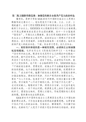 第二批主题教育微党课:加强党性修养永葆共产党人政治本色强党性,是学习贯彻XXX新时代中国特色社会主义思想主题教育的总要求之一。党性是党员干部立身、立业、立言、立德的基石。在学习贯彻XXX新时代中国特色社会主义思想主题教育工作会议上,XXXXXX对主题教育各项工作作出全面部署,对开展主题教育的总要求作出深刻阐释,其中一个方面就是强党性。开展这次主题教育,要自觉用XXX新时代中国特色社会主义思想改造主观世界,深刻领会这一思想关于坚定理想信念、提升思想境界、加强党性锻炼等一系列要求,始终保持共产党人的政治本色。下面,结合学习思考,谈几点体会。一、党性修养体现的是一种党性觉悟,必须持之以恒地强化党性锻炼。毛泽东同志在《改造我们的学习》一文中指出没有科学的态度,既没有马克思列宁主义的理论和实践统一的态度,就叫没有党性,或叫党性不完全。一名党员干部如果没有了马克思主义信仰,没有了党性,或者党性不纯粹,就谈不上党性修养,也不是一名合格的领导干部。XXXXXX指出:干部的党性修养、思想觉悟、道德水平不会随着党龄的增加而自然提高,也不会随着职务的升迁而自然提高,而需要终身努力。成为好干部,就要不断改造主观世界、加强党性修养、加强品格陶冶。要时刻用党章、用共产党员的标准要求自己,要有与人不求备,检身若不及的精神,时刻自重自省自警自励,努力做到心不动于微利之诱,目不眩于五色之惑,老老实实做人,踏踏实实干事,清清白白为官。从近些年查处的案件来看,一些干部出问题,根源是主观上放松了政治理论的学习,理想信念缺失、思想认识错位,导致思想防线之堤逐渐坍塌,最终滑向违法犯罪深渊。XXX新时代中国特色社会主义思想是马克思主义中国化的最新理论成果,不仅包含着党治国理政的重要思想,也贯穿着中国共产党人的政治品格、价值追求、精神境界、作风操守的要求,是新时代广大党员干部提升党性修养的行动指南。新征程上,用伟大建党精神滋养党性修养,就要深刻领悟马克思主义及其中国化创新理论的真理性,增强自觉贯彻落实XXX新时代中国特色社会主义思想的坚定性,永远信党爱党为党,真正成为百折不挠、终生不悔的马克思主义战士,不断把为崇高理想奋斗的实践推向前进。加强领导干部思想淬炼,必须学懂弄通做实XXX新时代中国特色社会主义思想,做到知其言更知其义,知其然更知其所以然,不断增强运用XXX新时代中国特色社会主义思想蕴含的立场观点方法分析和解决问题的能力,在常学常新中加强理论修养,在真学细究中补足精神之钙,在深学笃用中夯实信仰之基,不断坚定信仰、信念、信心。二、党性修养体现的是一种纪律,必须毫不放松地抓好纪律约束。我们党是靠革命理想和铁的纪律组织起来的马克思主义政党。我们党的性质决定,共产党员比群众要有更严的纪律、更高的觉悟、更远大的追求。我市党员干部纪律作风总体状况上是好的,但也存在形式主义、官僚主义的现象,不担当不作为、表态多落实差、执行力不强、慢拖瞒的问题比较突出;有的纪律观念淡薄,重大事项报告不及时、不规范,有事找不到,外出不请假;有的在正风反腐高压态势下仍不收敛、不收手,顶风违纪,一些重点领域、重点项目的廉政风险仍然突出,等等。这就需要各级党员干部进一步加强党性修养,强化组织观念,严守党的纪律。同时,研究强化纪律监督和约束的新办法。比如,要研究如何强化干部对政治纪律政治规矩的遵守。有不少干部对政治纪律政治规矩存在模糊认识,不知道纪律有几条?规矩是什么?程序怎么走?边界在哪里?组织和纪检部门可以归纳梳理出直接、简单、明白的纪律规矩清单,哪些事不能做、哪些话不可以说,一清二楚,便于党员干部记牢、掌握、遵守。比如,要研究如何强化对关键岗位廉政风险点的管控。特别是对具有审批权、监管权、执法权的关键岗位、关键干部,对一些拥有实际权力、直接与企业群众打交道的部门中层干部,怎么强化纪律警示和监管?可以对关键岗位中层干部采取定期轮岗制度、定期警示谈话制度,也可以打破部门限制,推动中层干部在部门之间轮岗交流;对于工程招投标等领域,进行流程再造,从流程和机制上减少廉政风险;还要研究如何更好地发挥廉政档案的作用,与执行力档案一起,成为对干部综合评价的重要依据。三、党性修养体现的是一种知识能力,必须注重培育干部专业精神。专业能力修养、专业精神培养是党性修养的关键,共产党员既要政治过硬,也要本领高强。毛泽东同志强调又红又专的专,是指各行各业的干部要熟悉所从事工作的业务。邓小平同志提出干部队伍四化方针中的专业化,就是要求干部成为精通本行的行家和能手。XXXXXX多次强调建设一支高素质专业化干部队伍的重要性,在党的XX大报告中指出要注重培养专业能力、专业精神,增强干部队伍适应新时代中国特色社会主义发展要求的能力。当前我市干部队伍的专业精神仍显不足,守摊子干部较多,李云龙