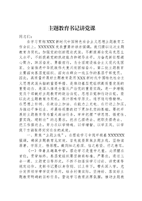 主题教育书记讲党课同志们:在学习贯彻XXX新时代中国特色社会主义思想主题教育工作会议上,XXXXXX发表重要讲话并强调,我们要以这次主题教育为契机,加强党的创新理论武装,不断提高全党马克思主义水平,不断提高党的执政能力和领导水平,为奋进新征程凝心聚力,踔厉奋发、勇毅前行,为全面建设社会主义现代化国家、全面推进中华民族伟大复兴而团结奋斗。第二批主题教育主要面向基层党组织、面向在群众一线工作的基层干部党员。因此,高质量开展好主题教育是用XXX新时代中国特色社会主义思想武装头脑的重要举措、是推动基层党组织高质量发展的重要动力、是深入推进全面从严治党的重要实践,进一步增强党员干部做好主题教育的政治自觉、思想自觉和行动自觉。要以此次主题教育为契机,原汁原味学原文,逐字逐句悟精神,在思想上补钙、在政治上加油、在能力上充电、在行动上加压,为推动干事创业、开展检视整改打下更加扎实的基础。要把开展好主题教育作为重大政治任务,牢牢把握学思想、强党性、重实践、建新功的总要求,把自己摆进去、把职责摆进去、把工作摆进去,努力在以学铸魂、以学增智、以学正风、以学促干方面取得实实在在的成效。一、聚焦主题主线,在理论学习中筑牢根基XXXXXX强调,确保主题教育见实效,首先就要聚焦主题主线,坚持读原著、学原文、悟原理,做到知之愈深、信之愈坚、行之愈笃。(一)带着主题集中学。理论学习是重中之重,必须摆在首位,贯穿始终。基层党组织要坚持高标准、严要求,通过三会一课、主题党日等形式,不折不扣落实学习讨论、讲党课等规定动作。支部书记要以身作则、以上率下,带头深入学,充分发挥领学带学促学作用,结合村情实际,坚持好、落实好主题教育明确的目标任务,营造学习教育浓厚氛围,推动主题教育走深走实。要坚持多思多想、学深悟透,全面系统学、及时跟进学、联系实际学,做到知其言更知其义、知其然更知其所以然。要努力用党的创新理论武装自己,对标XXX新时代中国特色社会主义思想,不断筑牢信仰之基,自觉增强四个意识、坚定四个自信、做到两个维护,自觉在思想上政治上行动上同党中央保持高度一致。(二)带着方法探究学。开展主题教育同学习贯彻党的XX大精神是有机融合的,立足新理论、运用新方法才能适应时代变化。我们要肯下苦功夫原原本本学、真功夫交流研讨学、新功夫线上平台学,深入推进主题教育,持续抓好成果转化,始终做到胸中有全局、眼中有问题、脑中有思路、手脚有行动。要全面学习领会XXX新时代中国特色社会主义思想的科学体系、丰富内涵、精髓要义、实践要求,精准把握这一科学理论的世界观、方法论和贯穿其中的立场观点方法,做到真学真懂真信。坚持读原著、学原文、悟原理,把自己摆进去、把职责摆进去、把工作摆进去,着眼思想充电、精神补钙,自觉对标看齐、对表落实,推动学习XXX新时代中国特色社会主义思想往深里走、往实里走,不断提高运用党的创新理论指导实践、推动工作的本领。二、坚持求实求真,在干事创业中担当作为开展主题教育,要以求实作风推动干事创业,以求真态度展现担当作为。干事创业,先要做到学思用贯通、知信行统一;担当作为,就要立足群众柴米油盐、关心百姓急难愁盼,用群众的获得感、幸福感、安全感来检验主题教育效果。(一)坚持统筹推进。坚持理论学习、调查研究、推动发展、检视整改一体推进,是实现主题教育根本任务的科学有效机制。通过学习提高理论素养,通过调查研究掌握实际情况,然后把学习的内容和研究的成果用在推动发展中,以强化理论学习指导发展实践,以深化调查研究推动解决发展难题。同时,要充分结合问题清单,把检视整改贯穿主题教育全过程。此次主题教育不仅仅是学习理论,更是要将理论与实践充分结合,用学习成果指导工业、产业、环保等各项事业高质量发展。(二)坚持群众路线。在主题教育中用好深、实、细、准、效五字诀深入调研,从解决人民群众的急难愁盼问题入手,在就业、教育、医疗、住房、养老等民生领域办好事实事。真诚倾听群众呼声、真实反映群众愿望、真情关心群众疾苦,通过深入调研把情况摸清、把问题找准、把对策提实,真正把惠民生、暖民心、顺民意的工作做到群众心坎上。要继续发扬求真务实的作风,多在实效上用功、少在形式上费劲,以钉钉子精神一件一件抓落实,一项一项求成效,从解剖一个问题,到解决一类问题,解决民生领域的突出问题,推动主题教育取得扎实成效。坚持当下改与长久立相结合,注重从源头上解决问题,通过建章立制补齐短板。此次耕地补充恢复工作,事关国家粮食安全,耕地是粮食生产的命根子,是中华民族永续发展的根基,大家要不遗余力,千方百计完成耕地恢复补足任务。三、做到立行立改,在检视整改中锤炼作风勇于自我革命,是我们党最鲜明的品格,也是我们党最大的优势。XXXXXX在学习贯彻XXX新时代中国特色