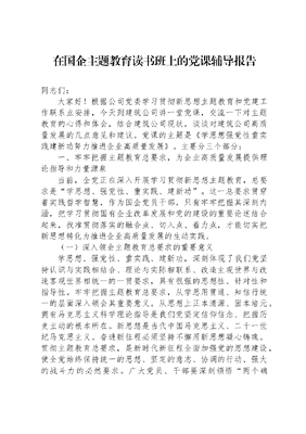在国企主题教育读书班上的党课辅导报告同志们:大家好!根据公司党委学习贯彻新思想主题教育和党建工作联系点安排,今天到建筑公司讲一堂党课,交流一下对主题教育的心得和体会,结合建筑公司现状,谈谈对建筑公司高质量发展的几点意见和建议。党课的主题是《学思想强党性重实践建新功努力推进企业高质量发展》。主要分三个部分:一、牢牢把握主题教育总要求,为企业高质量发展提供理论指导和力量源泉当前,全党正在深入开展学习贯彻新思想主题教育,总要求是学思想、强党性、重实践、建新功。这一总要求贯穿着实践哲学智慧,作为国企党员干部,只有牢牢把握其深刻内涵,把学习贯彻国有企业改革发展和党的建设的重要论述结合起来,找准贯彻落实的融合点、切入点、着力点,才能切实把新思想转化为推进企业高质量发展的生动实践。(一)深入领会主题教育总要求的重要意义学思想、强党性、重实践、建新功,深刻体现了我们党坚持认识与实践相结合、理论与实际相联系、改造主观世界与改造客观世界相统一的一贯要求,具有很强的思想性、针对性和指导性。牢牢把握主题教育总要求,从学思用贯通、知信行统一的层面深入领会其重要意义。从思想上正本清源、固本培元。拥有马克思主义科学理论指导是我们党坚定信仰信念、把握历史主动的根本所在。新思想是当代中国马克思主义、二十一世纪马克思主义。奋进新征程必须坚持不懈用新思想凝心铸魂。贯彻主题教育总要求,是新时代新征程全面加强党的思想建设,使全党始终保持统一的思想、坚定的意志、协调的行动、强大的战斗力的必然要求。广大党员、干部要深刻领悟两个确立的决定性意义,增强四个意识、坚定四个自信、做到两个维护,不断提高政治判断力、政治领悟力、政治执行力,始终在思想上政治上行动上同党中Y保持高度一致。提振锐意进取、担当有为的精气神。领导同志指出:学习贯彻新思想是新时代新征程开创事业发展新局面的根本要求。新时代新征程,面对错综复杂的国际国内形势、艰巨繁重的改革发展稳定任务、各种不确定难预料的风险挑战,要实现党的XX大确定的战略目标,迫切需要广大党员、干部特别是各级领导干部进一步深入学习贯彻新思想。广大党员、干部要树立正确的权力观、政绩观、事业观,增强责任感和使命感,不断提高推动高质量发展本领、服务群众本领、防范化解风险本领,加强斗争精神和斗争本领养成,把新思想转化为坚定理想、锤炼党性和指导实践、推动工作的强大力量。增强自我净化、自我完善、自我革新、自我提高能力。党的XX大报告在充分肯定党和国家事业取得举世瞩目成就的同时,提出我们的工作还存在一些不足,面临不少困难和问题,比如一些党员、干部缺乏担当精神,斗争本领不强,实干精神不足,形式主义、官僚主义现象仍较突出。各级党组织和广大党员、干部要按照主题教育总要求,查不足、找差距、明方向,接受政治体检,打扫政治灰尘,纠正行为偏差,解决思想不纯、组织不纯方面存在的突出问题。不断增强党的自我净化、自我完善、自我革新、自我提高能力,使我们党始终充满蓬勃生机和旺盛活力,始终成为中国特色社会主义事业的坚强领导核心。(二)全面把握主题教育总要求的丰富内涵主题教育总要求是一个紧密联系、相互贯通、内在统一的整体。要全面把握主题教育总要求的丰富内涵,对其中的每一方面都做到了然于胸。学思想,全面学习领会新思想。全面学习领会新思想,既要做到全面系统掌握这一重要思想的基本观点、科学体系,把握好这一重要思想的世界观、方法论,坚持好、运用好贯穿其中的立场观点方法,又要做到把学习领会新思想同学习马克思主义基本原理贯通起来,同学习党史、新中国史、改革开放史、社会主义发展史贯通起来,同新时代进行伟大斗争、建设伟大工程、推进伟大事业、实现伟大梦想的丰富实践贯通起来,准确把握这一重要思想的理论逻辑、历史逻辑、实践逻辑,增进对党的创新理论的政治认同、思想认同、理论认同、情感认同,自觉用新思想指导各项工作。强党性,自觉用新思想改造主观世界。党性是党员、干部立身、立业、立言、立德的基石。党性上的坚定,离不开理论上的坚定。新思想,不仅包含着党治国理政的重要思想,也贯穿着中国共产党人政治品格、价值追求、精神境界、作风操守的要求。自觉用新思想改造主观世界,必须深刻领会这一重要思想关于坚定理想信念、提升思想境界、加强党性锻炼等一系列要求,把悟原理、求真理、明事理统一起来,筑牢信仰之基、补足精神之钙、把稳思想之舵,始终保持共产党人的政治本色。重实践,自觉践行新思想。学习新思想的目的全在于运用自觉践行新思想,要坚持理论联系实际的学风,坚持问题导向、实践导向、需求导向,真正把这一重要思想的世界观、方法论和贯穿其中的立场观点方法转化为自己的思想武器。要紧密结合新时代新实践新要求,紧密结合思想和工作实际,更加自觉用这一重要思想指导解决实际问题,改造客观世界、推动事业发展。建新功,从新思想中汲取