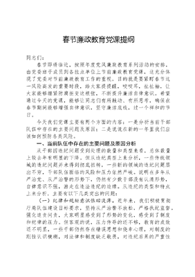 春节廉政教育党课提纲同志们:春节即将临近,按照年度党风廉政教育系列活动的安排,由党委班子成员到各挂点单位上节前廉政教育党课,这充分体现了党委对节前廉政教育工作的重视,目的就是要紧盯春节这一风险高发的重要时段,给大家提提醒,咬咬耳,扯扯袖,让大家能够绷紧防腐拒变这根弦,不断提升廉洁自律意识。希望通过今天的党课,能够让同志们有所触动、有所思考,确保在春节期间能够增强自律意识,坚守廉洁底线,过一个祥和的节日。今天我们党课主要有两个方面的内容:一是分析当前干部队伍中存在的主要问题及原因;二是说说在新的一年里我们应该如何预防各类风险。一、当前队伍中存在的主要问题及原因分析从干部因违纪问题受到处理的数量和类型来看,总体数量上较去年有明显的下降。但从违纪类型上来分析,一些传统领域的违纪问题并未得到彻底扭转,一些新的领域的违纪问题层出不穷,干部队伍面临的风险和压力依然严峻。说明在多年从严治党、从严治警的形势下,仍然有少数干部没有认清形势,自律意识不强,游走在违法违纪的边缘。从违纪的类型和特点上来分析,主要有以下几类突出的问题:(一)纪律和规矩意识依旧淡薄。近年来,我们积极贯彻厅局队伍建设目标要求,坚持从严治警不放松,严格执纪监督,强化追责问责,大家明显感受到了形势的变化,感受到了制度和纪律的压力。但客观的说,压力传导的还不够,教育的成效还不明显,一些干部仍然存在错误思想和侥幸心理,对制度的刚性认识模糊,对法律和制度缺乏敬畏,对违纪后果的严重性缺乏清醒的认识。从查处干部违纪的情况也可以看出,违纪的总量虽有下降但仍然居高不下,违纪的类型繁杂多样,纪律涣散、作风懒散的现象仍然存在,干部违反上下班纪律、会议纪律、值备勤纪律、培训纪律、生活纪律等情况时有发生,也暴露出我们有不少干部讲规矩、守纪律意识仍然十分淡薄。同时在工作作风上,我们有的干部,心态消极,作风散漫,工作动力不足,热情不高,缺乏积极主动、默默奉献的精神,有的甚至缺乏基本的责任心。(二)违反工作纪律问题依旧突出。从违反工作纪律的细分情况来看,值班值勤期间擅自离岗以及履职不认真的有X人,违反会议纪律的有X人,违反外出培训纪律的有X人。这几类都是近年来我们查处的十分典型的违纪问题,可以说是年年都有被查处,但就是屡禁不止。特别是在X问题上,受到处分处理的干部已经不在少数,但我们仍有干部存在错误思想,无视禁令,无视违纪教训和严重后果,不断突破制度和底线。我们说如果在值勤期间擅自脱岗发生了安全事故,那是要被追究刑事责任的,但还是有干部心存侥幸,敢于冒险。还有就是外出培训不遵守纪律问题,去年光参加培训被退训的就有3人,分别受到了诫勉谈话处理。这些问题也反映出我们的干部在严守工作纪律问题上仍然没有引起足够重视,违反工作纪律的情况依旧突出。(三)工作八小时外管理隐忧不断。去年,我们出台了《关于加强八小时以外活动监督管理的实施办法(试行)》,目的是加强干部八小时以外管理,减少违纪风险。但从统计数据来看,仍然发生了酒后滋事、酒驾醉驾、酒后上岗、酒局饭局、个人债务处理不当、网上不当发言等违纪问题。可以说,八小时以外情况的掌握一直是队伍管理中的难点和薄弱点,八小时外如果不管好,也会出大问题,同样会危及队伍安全,影响单位正常工作的开展。我们有少数干部平时不注重学习,不注重自身修养,缺乏健康的兴趣爱好,也没有养成良好的生活习惯,在八小时工作以外无所适从,有的无视社会规范,扰乱社会管理秩序;有的沉迷酒局饭局,酒后缺乏自控,这些游走在违法违纪边缘的行为,稍有不慎,就可能引发严重后果。(四)执法差错和执法不当问题不容忽视。从今年处理的违纪问题以及办理的信访举报件来看,执法差错和执法不当问题有所上升,主要是在办理X案件中出现明显差错以及在X教育管理过程中存在不恰当表现。这从侧面也反映出我们部分干部规范执法意识的薄弱,反映出管理粗暴等陈规陋习依然存在。随着执法要求和标准的不断提高,如何规范执法、正当执法,如何摒弃陈规陋习,如何有效规避执法风险是摆在我们每位干部面前的重要课题,必须引起充分的重视。二、结合上述违纪的特点和原因,在新的一年里应该怎么做,我代表党委提几点要求(一)认清形势,端正态度,提高法纪意识。当前我们国家的反腐败形势大家都十分清楚,党的十八大以来,党中央通过打虎拍蝇猎狐等一系列强有力的举措,坚决遏制腐败现象蔓延势头。根据中纪委通报的数据,近X年来,全国纪检监察机关就处置问题线索X万件,谈话函询X万件,立案X万件,处分X万人,可以说力度依旧很大。XXXXXX曾指出:要以永远在路上的执着将全面从严治党引向深入,开创全面从严治党新局面。可以说,全面从严是我们党和国家生活中的主旋律。新修订后的《中国共产党章程》《中国共产党党内监督条例》等一系列党内法规的颁布实施,目的就是要强化全面从严治党,将纪律和规矩
