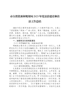 市自然资源和规划局2023年度法治建设和普法工作总结2023年是全面贯彻落实党的二十大精神开局之年。全局上下紧紧围绕两统一核心职责,聚焦强基础、优空间、护资源、促集约、维权益、惠民生六条主线,完善制度建设,强化权力监督,妥善化解矛盾,全面提升自然资源和规划领域法治建设和普法工作水平。一、加强依法行政制度建设(一)科学编制计划,加强法治引领明确局主要负责人为推进依法行政工作第一责任人。认真研究各项工作的计划规划编制工作,科学统筹全市自然资源和规划依法行政工作规范有序开展。制定了《关于全面推进全市自然资源规划系统法治建设的意见》,明确了6大类18项具体的工作要求;制定了《2023年开展法治宣传教育工作计划》,明确了宣传教育工作具体任务,并把依法行政工作纳入到全局工作的总体布局中。我局常年聘请律师担任法律顾问,适时邀请相关法律专家,定期分析研究依法行政工作。(二)强化制度建设,规范文件管理认真落实《自然资源规范性文件管理规定》和市规范性文件管理要求,积极推动合法性审查、集体审议、公开发布、备案、解释、评估、清理等各项制度落地实施。今年,申报(结转)3个市政府规范性文件立项,即《市政府办公室关于加强我市城市地下管线规划建设管理的实施意见》(责任科室:国土空间规划科)、《市生态券交易管理办法》(责任科室:自然资源开发和利用科)、《关于重新公布市征地区片综合地价的通知》(责任科室:国土空间用途管制科),目前均已完成合法性审查。对规范性文件进行全面清理,共清理政府规范性文件21件,其中继续有效18件,拟废止2件,拟修改1件;共清理部门规范性文件8件,其中继续有效7件,拟废止1件。做好规范性文件集中公开工作,在江苏省规章行政规范性文件备案审查工作平台集中公开部门规范性文件1件。二、依法全面履行各项职能(三)加快简政放权,推进放管服改革一是开展行政权力事项标准化建设。按照四级四同要求,定期对我局行政权力进行动态调整,目前行政权力事项共366项,其中行政许可37项、行政征收16项、行政确认4项、行政奖励17项、行政给付1项、行政强制17项、行政征用1项、其他权力15项、行政处罚258项。二是全面推进一件事、一次办、不见面事项。我局立足工作实际,以密切服务群众的一件事为视角,大力推行一件事、一次办、不见面。截止目前,已有10项业务推行了一件事、一次办、不见面,覆盖了规划、利用、测管、市政、不动产登记等数量多、与群众密切相关的业务。通过主动与住建局、数政局、审图中心、税务等部门沟通,制定横向联动机制,实现事项合并办理;通过统一申请表、精简申报材料、缩减审批时限,实现了一个窗口、一次申请、一张表单、一套材料;通过强化电子签名、电子印章等身份认证的应用,最终实现部分不动产登记业务手机端掌上办模式,解决了群众多跑路、耗时长、材料多等问题,提升了群众的获得感和满意度。三是深化集成服务改革。不动产登记提速增效,实现所有常规业务T+0即办。截止目前,不动产登记中心受理各类登记业务127409份,审核108415份,督查抽核43861份,扫描59480份,发放不动产权证45224份,完成档案114885份。窗口查档量39815件,拆迁查询213件。12345回复529次,12345热线电话5197条。(四)推进互联网+,完善便民举措围绕作风建设和创新创优主线,深化互联网+不动产,进一步优化营商环境。一是建设首个镇级标准化不动产登记分中心。率先在徐霞客分中心打造不动产登记无差别综合窗口,实现分中心所有窗口均能独立完成全流程、全业务登记服务,实现不动产业务全澄通办就近可办。二是完成全国首宗挂牌成交的国有+集体组合地块不动产登记工作。10月25日,为长泾镇舜丰纺织循环产业园污水处理厂跨宗项目成功发放了不动产权证。三是实现数字人民币加持不动产登记服务。为满足群众多层次多样化支付需求,在税费一次收缴后台自动清分中增添数字人民币支付方式,群众可自由选择缴费方式,切实增进金融服务普惠性。四是首次在工业用地中采用共用宗进行分幢登记。1月,综合保税区开发投资有限公司申请高标准厂房分幢登记,转变以往独立宗地概念,首次采用共用宗登记宗地面积,帮助企业简化不动产后续分割、变更登记流程,最大程度利企便企。五是实现带押过户业务扩面提质。我市带押过户案例获评第一批全国优化不动产登记领域营商环境典型案例。截止目前,全市已办理带押过户业务163笔,涉抵押金额2亿余元。六是推进农房非公证继承登记发证工作。出台《农房非公证继承(受遗赠)不动产登记操作办法》,统一收件材料、流程、审核标准、登记规范。建立非公证继承疑难问题会商领导小组,定期出台《市非公证继承登记疑难问题问答》,形成调查法律意见书