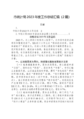 市统计局2023年度工作总结汇编(2篇)目录1.市统计局2023年工作总结22.市统计局2023年普法依法治理工作总结.7市统计局2023年工作总结2023年,在上级统计机构关心指导下,在市委市政府正确领导和重视支持下,XX统计工作立足服务经济发展、当好参谋助手职能定位,在深入开展主题教育中凝聚思想合力、筑牢服务意识、激发奋斗热情,靠前发挥统计信息、咨询、监督作用,有力推进经济普查、决策参谋、队伍管理、统计监督等重点工作,全力为我市打造三省边际中心县城贡献统计力量。一、以决策需求为导向,持续强化服务发展统计支撑(一)优参谋服务水平。紧扣决策需求,建立数据申报日报、指标动态快报、服务争先专报,专项汇编工业数据月报、山区海岛县指标季报,撰写争先创优研判材料30余篇,编发要情快报11期、统计要情专报13期,获市领导批示8次(其中市委、市政府主要领导批示7次)。前三季度我市经济运行整体稳中有进,实现地区生产总值XX亿元,按可比价计算,增长7.2%。固定资产投资XX亿元,增长24.1%,较上半年提高8.5个百分点,在衢州排名第2。全部社会消费品零售总额XX亿元,增长9.7%。(二)优培训指导质量。紧扣业务需求,部门单位点单培训重点,班子成员带队上门指导,前三季度开展培训指导130余次(业务培训60余次、走访指导70余次),推送统计小课堂业务科普12期,联合市委党校开设统计培训班1期,紧盯经济发展大局,编撰指标解读、跟进业务讲解,多渠道服务衢州当龙头、全省争上游目标。(三)优业务支撑质效。紧扣新增入库,强化入库研判、进度追踪部门联动,全力对接服务重点企业(项目)入库。前三季度,全市固投项目入库180余个,其中亿元以上项目20余个;企业入库29家,较去年同期增长16%,其中工业、贸易企业新增数较去年增长29.4%。二、以青年干部为重点,持续强化统计队伍教育管理(一)完善一套制度机制。以青年干部教育管理监督为重点,完善干部帮带、监督管理制度,在课题撰写、向上对接、区域考察、基层走访、部门交流中,班子成员与青年干部结对行动,新老干部协作调研,完成专业课题13篇,提炼信息成果38篇(其中20余篇获省统计局信息网站采用),持续打造专注+大气、执著+勇气、团队+和气统计青年干部队伍。(二)构建一套培养体系。落实青学课堂、信息练兵、研场点将、谋项引航、廉风润心、勤行致远、论辩培才、晒绩争先、实战演武等9项举措,一体构建统计青年干部大讲堂8+N培育体系,年内开展青年干部读书会,举行寻迹溯源学·青年谈体会活动,开展助力秋收·党员先行水稻收割比赛,多维度培养统计青年干部统揽、统观、统筹理念及计算、计智、计划水平。(三)制定一套督考举措。以关心+暖心、督导+引导、带动+触动的统计家文化,教育引导拓展运用四维考评机制,推进科室工作季度晾晒、信息考核季度排名、干部职工年度述职等机制,落实考勤通报、绩效激励等举措,分类设置考核奖项,扎实严管、厚爱举措。三、以夯基提质为目标,持续强化统计生态氛围营造(一)坚持培训+管理并举,前三季度,联合党校开设统计工作培训班,持续推进基层统计信息库建设,表彰2023年度统计工作中贡献突出网格统计员71名、公布最美统计人10人,激发基层队伍凝聚力和向心力,相关工作2次在省级统计工作会议中获通报表扬。(二)坚持指导+执法并重,创新第三方统计业务指导评估模式,现场评估指导重点企业400余家,相关举措获国家统计局下属机构(中国华信统计师事务所)专项调研。2023年统计执法76家,提前2月完成全年统计执法计划,计划完成率138%,查处统计违法单位4家,其中2家予以警告处罚,2家予以警告并处罚款,罚款金额总计XX元。(三)坚持自查+协查并进,年内部署推进统计造假专项治理行动,走访检查在库单位1300余家,查纠问题124个,联合纪检、巡察、审计、组织人事等监督主体,推进制度建设、会商研判、联合督查,部署开展我市首轮统计巡查,持续强化统计监督。四、以多方协同为抓手,持续强化经济普查攻坚合力(一)顶层重视保障有力。推动五经普工作纳入市政府常务会议研究重点,衢州范围首个设立跨部门、实体化运行县级普查机构,市本级提供经费XX万元,成功争取衢州市五经普综合试点在江举办,隆重召开我市经济普查动员部署会,为普查工作开展提供坚实保障。(二)部门联动行动有力。组建28个部门参与的普查领导小组办公室,分行业开展普查产业名录座谈交流,联动税务、市场监管等部门,发动基层站所力量开展信息汇总及入户摸排,高效推动普查工作分解落实。以普查宣传为重点,合作开展七夕草坪音乐会跑遍一座城,跑进五经普统计开放日进社区等普查宣传活动,相关信息
