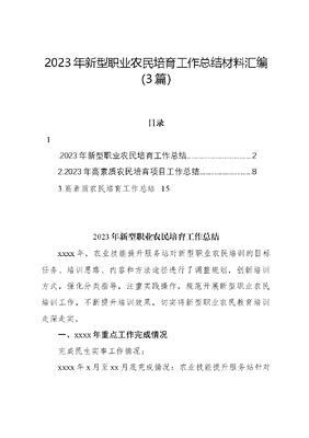 2023年新型职业农民培育工作总结材料汇编(3篇)目录1.2023年新型职业农民培育工作总结..22.2023年高素质农民培育项目工作总结.83.高素质农民培育工作总结152023年新型职业农民培育工作总结xxxx年,农业技能提升服务站对新型职业农民培训的目标任务、培训思路、内容和方法途径进行了调整规划,创新培训方式,强化分类指导,注重实践操作,规范开展新型职业农民培训工作,不断提升培训效果,切实将新型职业农民教育培训走深走实。一、xxxx年重点工作完成情况完成民生实事工作情况:xxxx年x月至xx月底完成情况:农业技能提升服务站针对全区番茄、黄瓜、草莓等重点栽培类合作社、重点园区、重点家庭农场户开展种植技术培训、电子商务、农产品安全生产、绿控技术等相关技能总计培训xx次,其中观摩学习x次,总计培训学员人数xxxx人次。其他各类培训工作完成情况:农产品电子商务培训:农业技能提升服务站创建自媒体平台账号,积累运营实战经验,完善教学能力。目前主要围绕番茄种植管理与番茄种植户的日常两个类别拍摄系列视频。目前已编辑上传视频xx余个,浏览量达xxxx余次。农业技术人员培训:组织农业服务中心农业技术人员围绕设施蔬菜、谷物、甘薯等种植技术、水肥管理、法律法规、农产品质量安全开展各类业务培训xx次,共计培训xxx人次。二、农业技能提升服务站主要特色培训工作开展措施和成效。(一)落实主要工作思路,保障新型职业农民培养工作顺利开展,为乡村振兴培育好人才。一线精准指导,走实一对一培训,保障种植技术落实到位。深入一线解决实际问题。针对具体各乡镇具体生产种植需求,农技站印制明白纸xxxx份,内容涉及谷子、玉米、大豆、甘薯、露地菜、花生等几大种类作物种植技术要点,印制《番茄潜叶蛾综合防控技术指导手册》xxx份,现均已发放到各乡镇园区。在无土番茄、甘草莓等种植技术教学中采取由一名实操老师带领农民的实训教学方式,近距离、手把手的进行种植要点讲解,使其在以后的种植生产过程中,学员能够活学活用,达到一看就懂、一学就会、一用就灵的教学目的。强化农用技能线上咨询、培训学习,建立服务平台建立。农业技能提升服务站采取抖音、微信群等线上平台,充分发挥互联网优势,将培训搬到网上,让农民与专家直接连线、与技术员直接沟通。通过线上培训、线上解答、线上授课的方式为群众答疑解惑,让农民居家培训。农产品电商销售培训:遴选具有多年电商运营实战经验的讲师以及在实际工作中做出特色的涉农类专家针对学员自身电商情况进行培训,根据各大电商销售平台特点进行有针对性的培训(主要为淘宝、抖音、微信、团购平台)。在此基础上,根据学员销售实际情况,安排在电商实训基地进行一至两周的驻点学习。有重点地培育农民的质量意识、安全意识、生产标准化意识、品牌意识,通过开展互联网信息和电商知识的应用培训,推进电商+基地(合作社)+农户的电商模式,让农民摆脱陈旧的生产经营思路,带动农民打造产加销一体化的农业供应链,加快农产品的流通。建立农业技术、电子商务培训学员电子档案,完善追踪机制,对已完成的培训进行总结。积极组织座谈会,邀请学员交流经验,定期追踪访问学员种植、创业情况,建立相关档案;建立农技站学员微信群,上联专家,下联农户,学员还可以利用班级微信群相互交流,逐步形成培育一人、致富一家、带动一片的良好局面。将全国农民教育培训信息管理系统作为一项重要内容将培育学员、授课教师、课程设置等情况填报、上传,做到及时上线可查,提升培训服务质量。创建自媒体平台账号,积累运营实战经验,完善教学能力自xxxx年开始农技站于自媒体平台拍摄上传教学影像视频,一方面为了加强我站外宣工作,同时也为农业技术以及电子商务课程积累教学影像资料,从而不断提升教师业务水平,完善教学能力,提高教学实效。师资力量到位,确保培训含金量。根据对培训教师满意度测评、授课内容、授课形式等方面,继续聘用学员反应好、培训形式好、效果好的老师;聘请职业教学经验丰富的高站教授、教学生产结合紧密的专业老师、长期服务在生产一线农业专家作兼职教师。通过优化师资,确保每个培训都有含金量,使农民反响强烈,兴趣高涨。(二)农技站帮助农户发展打造xx农产品优质品牌在培训过程中,注意发掘农产品种植业中的乡土人才。新型职业农民培育工作也是乡土人才的发掘平台,重点培育并扶植出本地市场特色农产品品牌,运用品牌的优势效应带动本地农业相关产业发展,提高xx区农产品影响力与关注度,增强竞争力。(三)强化精准扶贫、助残工作,促进低收入户增产增收。一是落实专人负责责任制。利用农业技能提升服务站技术培训优势,党支部引领每名党员包x个固定农户