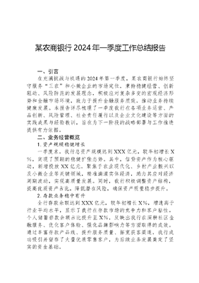 某农商银行2024年一季度工作总结报告一、引言在充满挑战与机遇的2024年第一季度,某农商银行始终坚守服务三农和小微企业的市场定位,秉持稳健经营、创新驱动、风险防范的发展理念,积极应对复杂多变的宏观经济形势和金融市场环境,致力于提升金融服务质效,推动业务持续健康发展。本报告详尽梳理了一季度我行在各项业务运营、产品创新、风险管理、社会责任履行以及企业文化建设等方面的实践成果与经验教训,旨在为下一阶段的战略部署与工作推进提供有力依据。二、业务经营概览1.资产规模稳健增长一季度末,我行总资产规模达到XXX亿元,较年初增长X%,实现了预期的稳健扩张态势。其中,信贷资产作为核心驱动,新增投放XX亿元,聚焦于农业现代化、乡村产业振兴以及小微企业等关键领域,精准滴灌实体经济,助力其应对经济周期波动,实现高质量发展。同时,我行积极调整资产结构,提高优质资产占比,降低潜在风险,确保资产质量稳步提升。2.存款业务稳中有升全行存款余额达到XXX亿元,较年初增长X%,增速高于行业平均水平,显示了我行在存款市场的竞争力和客户粘性。个人储蓄存款余额占比提升至X%,反映出我行在深耕社区金融服务、优化客户体验、强化品牌影响力等方面取得的成效。通过丰富存款产品线、提升服务质量、拓宽获客渠道,我行成功吸引并留存了大量优质零售客户,为后续业务发展奠定了坚实的资金基础。3.中间业务收入显著增加一季度,我行实现中间业务收入XX万元,同比增长X%,成为盈利结构优化的重要支撑。其中,电子银行业务手续费收入、理财业务管理费收入以及企业结算业务收入均实现快速增长。这得益于我行积极推动数字化转型,优化业务流程,提升服务效率,满足客户多元化、个性化的需求,从而有效提升了中间业务的盈利能力。三、金融服务与产品创新1.数字化转型持续深化我行紧跟金融科技发展趋势,加速推进数字化转型进程。一季度,手机银行、网上银行等电子渠道功能不断升级,用户体验显著提升,线上交易活跃度大幅提高,线上业务交易量同比增长X%,占比提升至X%。同时,我行推出了农e贷、微企宝等系列线上信贷产品,简化申请流程,缩短审批时间,提升资金到账速度,有效缓解了三农及小微企业融资难、融资慢的问题。2.普惠金融深入推进我行持续深化普惠金融服务,着力构建多层次、广覆盖的金融服务网络。一季度,设立乡村振兴金融服务站X个,将金融服务延伸至田间地头,打通金融服务最后一公里。同时,推出惠农贷、助微贷等特色产品,针对不同农业主体和小微企业特点,提供差异化、定制化的融资解决方案。一季度,涉农贷款余额增长X%,惠及农户及小微企业X万户,有力支持了乡村振兴战略实施。3.绿色金融初见成效面对全球绿色低碳转型趋势,我行积极响应国家碳达峰、碳中和战略,设立绿色金融专营部门,研发并推广绿能贷、绿色供应链融资等绿色信贷产品,大力支持清洁能源、节能环保、循环经济等绿色产业项目。一季度,绿色信贷余额达到XX亿元,占总贷款比例提升至X%,初步形成了绿色金融文可居文库——海量学习资料,手机电脑均可下载www.wenkeju.com业务体系,为实现经济社会可持续发展贡献力量。四、风险管理与内控建设1.风险防控体系不断完善我行始终坚持审慎的风险偏好,建立健全全面风险管理体系。一季度,强化信用风险、市场风险、操作风险等多维度风险识别与评估,优化风险预警机制,加大不良贷款清收力度,一季度末不良贷款率控制在X%,优于行业平均水平。同时,密切关注宏观政策变化和市场动态,适时调整信贷政策,有效防范系统性风险。2.合规文化建设深化我行高度重视合规文化建设,将合规理念融入日常经营管理。一季度,组织全体员工深入学习《反洗钱法》、《个人信息保护法》等法律法规,开展合规知识竞赛、案例警示教育等活动,强化全员合规意识。此外,积极配合监管机构的各项检查,一季度顺利通过了X项专项检查,未发生重大违法违规事件,彰显了我行良好的合规经营水平。3.内控审计强化监督效能我行内审部门按照年度审计计划,一季度完成了对X家支行的现场审计,发现并纠正问题X项,涉及业务操作、风险管理、内部控制等多个方面,有效提升了内部审计的覆盖面和影响力。通过审计整改,我行及时堵塞管理漏洞,优化业务流程,提高了内控执行效果,保障了全行稳健运营。五、社会责任与企业文化1.助力乡村振兴战略实施我行积极履行社会责任,深度参与万企兴万村行动,一季度组织开展了金融知识进乡村、金融服务直通车等活动X场,普及金融知识,提升农村居民金融素养,助力乡村产业兴旺、生活富裕。同时,通过信贷支持、资金捐赠等方式,助力乡村基础设施建设、特色产业培育,为乡村振兴注入金融动力。文可居文库——海量学习资料,手机电脑均可下载www.wenkeju.com2.员工队伍建设和关怀我行注