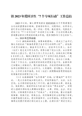 镇2023年爱国卫生7个专项行动工作总结2023年以来,镇认真贯彻落实XXXXXX关于开展爱国卫生运动的重要指示精神,坚持目标导向、问题导向、结果导向,紧盯存在问题和短板,进一步统一思想、狠抓落实,巩固提升爱国卫生7个专项行动和省级卫生乡镇、卫生村创建成果,营造整洁宜居文明美丽的城乡环境,现将2023年工作总结如下。一、2023年工作总结(一)强化组织领导,压紧压实责任。一是成立了由书记、镇长为组长的镇推进爱国卫生专项行动领导小组,其他班子成员为副组长,镇直单位负责人、驻翁单位负责人、各村(社区)党总支书等为成员;领导小组下设办公室,由分管领导任办公室主任,爱卫办工作人员为业务员,各相关部门明确1名专职人员,确保全镇爱国卫生7个专项行动扎实推进。二是党政领导班子成员既各负其责,又相互配合,结合分工安排,形成了工作合力,全面抓好抓细抓实爱国卫生工作。各相关部门加强向上对接请示,强化督促检查,及时发现和解决问题。各单位按照职责分工主动作为,认真履职,密切配合,形成合力,工作有力有序推进,各村(社区)按照属地管理原则组织统筹推进落实爱国卫生工作。(二)扎实推进新七个专项行动。1.绿城市专项行动。一是大力推进城乡绿化美化。有效衔接生产、生活、生态空间,全力推动绿化美化三年行动,着力将绿美水库、绿美生态、绿美景区、绿美学校在内的10个版块穿点成线,实现12公里的东西纵线从集镇向安置区、水库、学校、企业、村庄延伸,以集镇提升改造为突破点,攻坚突破,重点实施绿美集镇、绿美河流、绿美企业,利用集镇空闲土地种植万寿菊,补植更换绿化树木,通过种植草坪、水杉等植物,对邑林河集镇周边范围河堤进行绿化美化1公里,在遐尔茶厂周边空闲土地种植草坪、茶树。二是各村(社区)开展乡村绿化美化行动。大明湖生态旅游区景区绿化美化工程建设开工,计划完成总绿化面积800平方米;明山村完小绿美校园建设已基本完工,预计完成总绿化面积800平方米;绿美公路全部完成建设,明山水库绿美水库建设进入扫尾阶段。以X村提质增效为着力点,实现推门见绿,对外寨村民小组进行统一规划,重点打造绿美节点2个,摊笆山村民小组为示范点,采取见缝插绿措施,组织全体村民因地制宜种植植物花卉。对3公里公路进行绿化美化,形成路侧带状绿化美化景观。同时,把公共绿地、道路绿地、庭院绿化等内容纳入到乡村绿化美化行动,不断提高村内绿地覆盖率。2.治污染专项行动。一是深入实施生态环境建设、生态环境突出问题整治三年行动,打好蓝天、碧水、净土保卫战。抓好污水治理,全面消除黑臭水体。开展垃圾分类工作,集镇区全面推行生活垃圾分类投放、收集、运输和处置工作,健全垃圾分类体系,实现生活垃圾分类全覆盖。二是开展集镇建成区爱国卫生整治。各单位按照包保负责区域落实周一、周四保洁日制度,在全镇范围内开展集镇环境卫生整治工作,紧紧围绕对道路、街道、巷道,特别是背街小巷等路段环境卫生和容貌进行整治,清除道路及两侧垃圾、杂物、积尘、杂草、建筑残渣等。开展绿化带、河道、沟渠爱国卫生整治,落实河湖长制,加强日常监管。加强镇辖区内重点河流、水库、水塘、涵洞和水源点等日常监管,严厉查处违法排污行为及向河道乱丢、乱倒垃圾行为,加强畜禽粪便污水直排河道问题重点治理,彻底清理非法入河排污口,遏制污水直排河道,严格控制入河排污总量,建立入河排污口长效监管机制。三是各村(社区)建立执行村庄保洁制度。实现3个100%,每个自然村都有保洁员覆盖、所有自然村都建立保洁制度、所有自然村都建立垃圾收费制度,整治非正规垃圾堆放点,开展村庄道路、小巷爱国卫生整治活动,加强日常监督管理,确保无非正规垃圾堆放点,保障非正规垃圾堆放点无反弹现象,自然村内无垃圾乱堆乱放现象,生活垃圾得到及时就地或转运处置。3.除四害专项行动。一是加强病媒生物防治监测。严格按照病媒生物监测工作要求,开展鼠、蚊、蝇、蟑螂等病媒生物密度监测,掌握密度情况,为除四害提供科学依据。二是加强统一防灭力度,完善防制设施,公共外环境设置灭鼠毒饵站,堵塞鼠洞。督促指导公共食堂、餐饮店、商场等重点单位,按标准要求完善防四害等设施,坚持环境治理为主,物理防制和科学防制相结合,降低病媒生物密度,减少疾病传播途径。三是扎实有效地开展除四害活动,在全面整治环境卫生的基础上,组织人员有计划地开展以灭蚊灭鼠为重点的消除四害活动,通过集中开展与经常性开展相结合,落实消杀措施,消除四害孳生场所,彻底清除蚊、蝇孳生场所和卫生死角,翻盆倒罐,清除积水,不乱倒乱丢垃圾,做到不漏单位、不漏居民户、不留死角,把鼠密度、蝇密度、蚊密度、蟑密度控制在国家规定的标准范围之内,科学有效地开展灭杀工作,确保降低和控制四害密度,预防传染病的发生。4.食安心专项行动。一是深入推