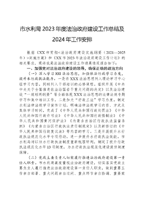 市水利局2023年度法治政府建设工作总结及2024年工作安排根据《XX市贯彻<法治政府建设实施纲要(2021—2025年)>实施方案》和《XX市2023年法治政府建设工作计划》的相关要求,现将我局法治政府建设工作进展情况报告如下:一、加强党对法治政府建设的领导,确保正确的政治方向(一)深入学习XXX法治思想,加强依法行政学习力度,提升水行政执法能力。一是将XXX法治思想列入理论学习中心组学习内容,同时列入干部培训的必修课程。组织开展《中共中央关于全面推进依法治国若干重大问题的决定》以及法治建设一规划两纲要等全面体现XXX法治思想的法律法规专题学习和集中培训工作。二是加大行政三法学习力度。制定水利法律法规学习宣传计划,明确法律法规学习内容、方式及集体学习时间,完成了《中华人民共和国行政处罚法》《中华人民共和国行政许可法》《中华人民共和国行政强制法》《中华人民共和国黄河保护法》《内蒙古自治区行政执法监督条例》《内蒙古自治区行政执法责任制规定》以及新修订的《中华人民共和国行政复议法》等内容的学习。三是开展提升水行政执法规范化水平专项行动,进一步提升水行政执法效能。市水利局对以往水行政执法制度重新梳理研判,制定了提升行政执法规范化水平13项制度,为水行政执法规范化建设提供制度保障。(二)党政主要负责人切实履行推进法治政府建设第一责任人职责。市水利局高度重视法治政府建设,切实落实党政主要负责人履行推进法治政府建设第一责任人职责,做到重要工作亲自部署、重大问题亲自过问、重点环节亲自协调、重要案件亲自督办,有序推进法治政府建设工作。二、法治政府建设工作进展情况(一)建立健全决策机制1.重大行政决策情况。积极完善依法决策相关机制,严格执行合法性审查制度,确保决策的科学性、有效性和可行性。对技术难度高、影响面广的事项及其它重大工作事项均通过局党组会议、局长办公会议集体研究决定,有效推进了我局重大事项决策的民主化科学化。全年未发生因决策不当造成负面影响的情况。2.政府法律顾问、公职律师制度推行情况。按照政府法律顾问、公职律师制度要求,外聘1名法律顾问,在行政执法、行政应诉等方面提供了法律意见,为我局法治工作提供了保障。(二)持续加强水利法规体系建设为切实加强河套灌区水利工程的科学管理和有效保护,2017年4月27日市人大常委会第三十一次会议通过的《XX市河套灌区水利工程保护条例》(以下简称《条例》)是XX市被赋予地方立法权后制定的首部地方性法规。为了更好的发挥地方立法促进地方社会治理的作用,实现良法善治的目的,新修订的《条例》已于2022年12月26日XX市第五届人民代表大会常务委员会第四次会议通过,经2023年3月29日内蒙古自治区第十四届人民代表大会常务委员会第二次会议批准,于2023年4月10日正式施行。结合《条例》的落实,5月份市水利局组织召开了全市水利系统《XX市河套灌区水利工程保护条例》专题学习会议,深入学习解读了《条例》的新规定、新举措及重要内容。《条例》的健全完善为推进全市水利工程依法管理和生态保护提供更有力的法律保障。按照我市农业深度节水控水攻坚战安排,以水资源刚性约束为前提,以最严格水资源考核为抓手,起草《XX市农业灌溉节水条例(草案)》《XX市深度节水控水奖励办法(试行)》并提交市政府审议,全面提升水资源集约节约安全利用水平。(三)严格落实放管服改革任务。1.推行包容审慎监管执法制度,加强对各旗县区水行政执法指导。根据涉水法律法规不予行政处罚、从轻、减轻处罚的规定,编制了水行政处罚三项清单,进一步优化涉水营商环境,提升监管标准化,对不予处罚的轻微违法行为和从轻减轻行政处罚的一般违法行为,充分运用政策辅导、行政建议、警示告诫、规劝提醒、走访约谈等柔性措施,加大对企业的行政指导力度,促进涉水主体依法依规开展生产经营活动。2.积极开展跨旗县多部门联合执法机制,加强日常执法巡查。市水利局执法支队定期开展专项执法检查及河道巡查,加大执法力度。2023年3月对乌拉特前旗大中矿业、乌拉特发电厂、乌拉特中旗太平矿业等企业生活生产取水口、计量设施、供水管网、取用水台账、供水协议、启用应急水源审批相关内容进行了专项执法检查。加强境内黄河河道巡查,制止在黄河河道内抽取黄河水违法事件1起、违法修建围堤事件1起,会同临河区水利局拆除一座违建彩钢房建筑。联合市检察院开展河湖清四乱春季行动,重点督查各旗县区河湖长制体系建设、河湖长履职尽责、河湖清四乱、河湖执法等工作情况。7月到乌拉特前旗乌梁素海实地督查河湖遥感疑似图斑校核工作的进展情况。11月7日陪同黄委晋陕蒙监督局检查组对黄河XX段跨河建筑在建工程黄河铁路大桥、国道110线黄河大桥进行汛前安全检查,实地查看项目落实防洪安全措施情况,并审阅两项工程2023-2024年度防凌预