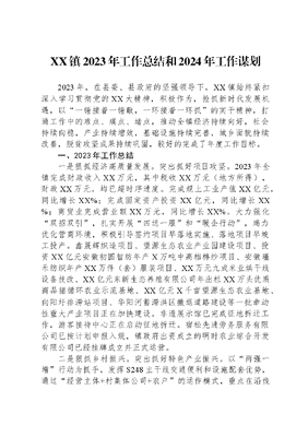 XX镇2023年工作总结和2024年工作谋划2023年,在县委、县政府的坚强领导下,XX镇始终紧扣深入学习贯彻党的XX大精神,积极作为,抢抓新时代发展机遇,以一锤接着一锤敲,一环接着一环抓的实干精神,打通工作中的难点、痛点、堵点,推动全镇经济持续向好,社会持续向稳,产业持续增效,基础设施持续完善,城乡面貌持续改善,脱贫攻坚成果持续巩固,较好的完成了年度工作目标。一、2023年工作总结一是狠抓经济高质量发展。突出抓好项目攻坚。2023年全镇完成财政收入XX万元,其中税收XX万元(地方所得),财政XX万元,均已超时序进度。完成规上工业产值XX亿元,同比增长XX%;完成固定资产投资XX亿元,同比增长XX%;商贸业完成营业额XX万元,同比增长XX%。大力强化双招双引,扎实开展四送一服和暖企行动,竭力优化营商环境,积极引导签约项目早落地实施、落地项目早竣工投产。鑫晟辉织造项目、望源生态农业产业园建设项目、投资XX亿元安徽初圆智纺年产X万吨中高档棉纱项目、安徽瑾禾纺织年产XX万件(套)服装项目、XX万元九成米业烘干线设备技改、XX亿元东新生态养殖有限公司年出栏XX万头优质商品猪循环农业示范基地、XX亿元X千亩望源生态农业基地、向阳圩排涝站项目、华阳河蓄滞洪区撤退道路建设等一批牵动性重大产业项目正在加快建设。非遗展示馆已完成征地拆迁工作,游客接待中心正在启动征地拆迁。宿松先进劳务服务有限公司已按计划申报入规,镇政府出资成立的明时农业综合开发有限公司已经挂牌成立并正式运营。二是狠抓乡村振兴。突出抓好特色产业振兴。以两强一增行动为抓手,发挥S248主干线交通便利和设施配套优势,通过经营主体+村集体公司+农户的运作模式,重点在沿线布局培育发展油茶、果蔬、花卉苗木、稻渔、六白猪等特色产业,望墩薄壳山核桃、金塘稻虾、东兴正宏家庭农场、东兴油茶等产业发展态势良好。强化人居环境整治和文明新风。持续开展三看三比活动,常态化推进六乱整治,鼓励各村社区全力推进村民理事会有效运行,依靠群众参与推动人居环境整治常态长效,县级美丽宜居自然村庄整治点洋普下古、东兴郭湾、马山刘屋基本完成整治,村庄面貌焕然一新,中心村管护水平持续提升,确保美丽乡村建得起管得住。247户改厕工作基本完工,继续完善改厕管护机制,持续加强农村改厕管护工作力度。镇村面貌得到明显提升。结合镇规划编制,因村施策有序推进编制11个村社区村庄规划,高质量完成村庄规划三年行动计划,完成老宅基地复垦20余亩。严格控制占用耕地现象,今年以来审批建农房43户,发出停建通知书9份,处置安全隐患3处。XX镇乡村振兴工作被 CCTV13新闻频道、学习强国、中国晨报等中央媒体报道34篇,省级媒体报道3篇,安庆市乡村振兴专报专题报道XX镇四笔连书谱写乡村振兴锦绣文章。三是狠抓巩固脱贫攻坚成果与乡村振兴有效衔接。突出抓好民生保障。严格落实四个不摘要求,为1605户脱贫户、52户边缘户制定一户一方案、一人一措施,落实帮扶巩固脱贫成果;常态化开展防贫动态监测和帮扶,核实防贫监测预警线索703条,排查整改问题114个,新增监测户11户39人,落实帮扶措施28条,坚决守住不发生规模性返贫的底线。狠抓政策措施落地、就业产业带动、综合保障兜底,加强扶贫同扶志扶智相结合,更加注重激发贫困户内生动力,健全稳定脱贫,有序推进衔接资金项目和扶贫资产管理,有效发挥现有扶贫项目带动作用,持续巩固脱贫成果。严抓控辍保学,义务教育学生入学率达100%,及时发放教育资助。科学管护7座光伏电站,为210户脱贫户和4个村稳定增加收入。发放雨露计划教育资助XX人次XX万元,扎实开展劳动力摸排、项目两拖欠和稳岗就业工作,脱贫人口、监测人口外出务工XX人。保障民生底线。累计补助农村居民最低生活保障XX人XX万元,保障城镇居民最低生活补助XX人XX万元;特困人员救助供养保障XX人,基本生活费XX万元,照料护理费XX万元;临时救助29人次XX万元;孤儿基本生活保障34人,保障支出XX万元。高龄津贴发放XX人,补贴金额XX万元,困难残疾人实际救助XX人、生活补贴XX万元。四是狠抓安全稳定。突出抓好安全隐患排查整改。2023年以来,XX镇党委政府坚持人民至上理念,以防为主、安全第一的思路有序抓牢安全稳定工作。强化阵地建设。完善标准化应急办公室,设立办公室3间、档案室1间、值班宿舍3间、应急物资储备厂库4处,组建应急快速反应队伍14支。2023年9月20日XX镇应急管理办公室规范化建设和消防工作站建设通过县安委会验收,总比分全县排名第二。XX镇XX埠社区被评为安徽省综合防灾减灾示范社区,正积极筹备申报国家级综合防灾减灾示范社区。常态化开展安全检查。今年以来共检查烟花爆竹、危化品经营单位XX家,发现安全隐患XX