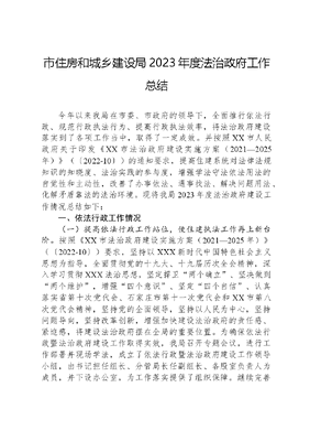 市住房和城乡建设局2023年度法治政府工作总结今年以来我局在市委、市政府的领导下,全面推行依法行政、规范行政执法行为、提高行政执法效率,将法治政府建设落实到了各项工作当中,取得了一定成效。并按照XX市人民政府关于印发《XX市法治政府建设实施方案(2021—2025年)》(〔2022-10〕)的通知要求,提高住建系统对法律法规知识的知晓度、法治实践的参与度,增强学法守法依法用法的自觉性和主动性,改善了办事依法、遇事找法、解决问题用法、化解矛盾靠法的法治环境。现将我局2023年度法治政府建设工作情况总结如下:一、依法行政工作情况(一)提高依法行政工作站位,使住建执法工作再上新台阶。按照《XX市法治政府建设实施方案(2021—2025年)》(〔2022-10〕)要求,坚持以XXX新时代中国特色社会主义思想为指导,全面贯彻党的十九大、十九届历次全会精神,深入学习贯彻XXX法治思想,坚定捍卫两个确立、坚决做到两个维护,增强四个意识、坚定四个自信、认真落实省第十次党代会、石家庄市第十一次党代会和XX市第八次党代会精神,坚持党的全面领导,坚持以人民为中心,坚持问题导向,坚持改革创新,增强加快建设法治政府的责任感、紧迫感,将建设法治政府摆在全局的重要位置。为确保依法行政暨法治政府建设工作取得实效,我局召开专题会议,进行工作部署并现场学法,成立了依法行政暨法治政府建设工作领导小组,由书记担任组长、分管局长任副组长、各股室负责人为成员,并下设办公室,为工作落实提供了组织保障。继续完善法律顾问制度,明确工作职责,规范工作程序,强化绩效考核,保证法律顾问在制定重大行政决策、推进依法行政中发挥积极作用。(二)全面加强依法行政能力建设。推动行政机关负责人带头遵守执行宪法法律,建立行政机关工作人员应知应会法律法规清单。坚持把民法典作为行政决策、行政管理、行政监督的重要标尺,我局将学法培训列入常态化建设,领导班子带头学,各股室组织学、深入学,形成了学法讲法用法的浓厚氛围。一是我局每年组织相关单位积极参加上级部门组织的业务培训,分批分次地组织干部职工学习了《中华人民共和国宪法》、《中华人民共和国建筑法》、《中华人民共和国民法典》、《中华人民共和国行政处罚法》、《中华人民共和国反有组织犯罪法》等相关法律法规,并结合工作实际,全面提高了干部职工的法律意识和执法能力。通过学习依法行政方针政策和依法行政基本理论,明确各自岗位的行政执法任务和执法责任,增强责任感,切实做到依法行政。二是认真组织参加行政执法人员培训考试,2023年51名行政执法人员取得了合格证书。三是我局全面推进八五普法规划实施,通过4·15国家安全教育日、12·4国家宪法日等时间节点,通过投放电子屏幕、楼宇电梯广告260余次,普法进企业工地68次、制作宣传标语条幅430份,发放传单、手册、赠品960余份。面向社会宣传住房和城乡建设领域法律法规、强化社会责任,开展公益性宣传教育,充分发挥法治宣传教育在维护社会和谐稳定中的先导性。(三)完善决策科学、执行坚决、监督有力的运行机制。一是做好权责清单动态调整工作。我局结合相关法律、法规、规章变化以及落实上级部门取消、下放、调整行政审批等权责事项情形,梳理我局权责清单,并做好权责清单动态调整工作。二是推行规范性合法审核制,凡涉及我局制定的规范性文件经合法性审核后,再按程序上报。三是制定《XX市住建局重大行政执法决定法制审核实施办法》,严格按照重大行政处罚决定集体讨论,按照规定公开行政处罚结果,确保处罚案件程序合法公正。四是重大行政决策事项充分听取公众意见。五是认真学习《河北省住房和城乡建设厅行政处罚裁量权基准》,落实行政处罚裁量制度。(四)深入推进放管服改革。分级分类推进行政审批制度改革,聚焦重点领域、区域精准放权,创新照单点菜放权机制,推广最多跑一次,压缩审批时间。全面落实政务服务好差评制度,让办事企业和群众评判政务服务绩效。(五)持续优化法治化营商环境。严格落实《优化营商环境条例》和《河北省优化营商环境条例》,依法平等保护各种所有制企业产权和自主经营权,系统排查、清理各类排除、限制竞争的显性和隐性壁垒。巩固拓展违法违规房地产开发项目重点领域清理规范成果,切实解决重大领域突出问题,加强法治建设,依法系统规范,强化源头治理,坚决遏制新增问题,完善招投标工作机制,健全社会稳定风险评估机制。(六)加强行政执法队伍专业化职业化建设。巩固拓展行政执法三项制度改革成果。统一行政执法人员资格管理,落实《河北省行政执法证件和行政执法监督检查证件管理办法》,加强行政执法人员培训学习,6月底前,针对我局行政执法人员在执法理论、执法技能、执法作风等方面存在的不足,以行政执法大培训大练兵活动为抓手,突出公共法律知识、专业法律知识、