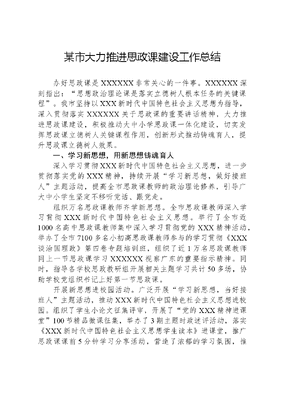 某市大力推进思政课建设工作总结办好思政课是XXXXXX非常关心的一件事。XXXXXX深刻指出:思想政治理论课是落实立德树人根本任务的关键课程。我市坚持以XXX新时代中国特色社会主义思想为指导,深入贯彻落实XXXXXX关于思政课的重要讲话精神,大力推进思政课建设,积极推动大中小学思政课一体化建设,切实发挥思政课立德树人关键课程作用,创新形式推动铸魂育人,提升思政课立德树人效果。一、学习新思想,用新思想铸魂育人深入学习贯彻XXX新时代中国特色社会主义思想,进一步贯彻落实党的XXX精神,持续开展学习新思想,做好接班人主题活动,提高全市思政课教师的政治理论修养,引导广大中小学生坚定不移听党话、跟党走。组织万名思政课教师齐学新思想。全市思政课教师深入学习贯彻XXX新时代中国特色社会主义思想。举行了全市近1000名高中思政课教师集中深入学习贯彻党的XXX精神活动,举办了全市7100多名小初高思政课教师参与的学习贯彻《XXX谈治国理政》第四卷专题培训班,组织了近1万名思政课教师同上一节思政课学习XXXXXX视察广东的重要指示精神。同时,指导各学校思政教研组开展相关主题学习共计50多场,协助学校党组织书记上好第一节思政课。开展新思想进校园活动。广泛开展学习新思想,当好接班人主题活动,推动XXX新时代中国特色社会主义思想进校园。组织了学生小论文征集评审,开展了党的XXX精神进课堂100节精品微课征集,举办了3期主题时政述评活动,落实《XXX新时代中国特色社会主义思想学生读本》进课堂,推广思政课课前5分钟学习分享活动,营造了浓郁的学习氛围,推动XXX新时代中国特色社会主义思想进校园、进课堂、进师生头脑。二、扎实推进大中小学思政课一体化建设深入推进大中小学思政课一体化建设,深化一体化机制建设、项目建设、师资建设、资源建设和共同体建设,切实增强思政课的针对性、有效性,更好地用党的创新理论铸魂育人。完善一体化共同体项目机制建设。XX市教育局积极与XX理工学院开展共建,成立XX市大中小学思政课一体化共同体协同创新中心,完善工作方案,细化年度工作计划,指导我市7个思政课类名师工作室和实践基地积极参与高校名师工作室的共建项目。积极开展一体化展示交流。以学习新思想,师生共成长为主题,市教育局教研室联合XX理工学院组织全市大中小学思政课一体化说课、课例展示、时政述评、课题研究等大型活动,通过XX等多个镇街举行相关交流活动,让更多的师生共享XX教育高质量发展的成果。2023年7月,全国大中小学思政课一体化建设研讨会在XX中学XX学校举办,来自全国各地的专家、学者、教研员和一线思政老师近600人汇聚一堂交流分享。XX思政团队承办的2024年第一期暨南方教研大讲堂第100场活动当天点播量累计77.60万次,全国29个省市观看,创下南方教研大讲堂开播以来的新高,获得国内同行的高度好评。扎实推进一体化联合教研活动。积极开展一体化成果征集评审活动,范围涵盖全市中小学和中职学校。教研室组织开展了XX市中小学思政课一体化教学展示交流活动,每个学段的前两名作品推荐参加省级遴选,获得省级一等奖6人次,二等奖3人次。在教育部组织的两届全国中小学思政课教师基本功展示活动中,我市的X老师、X老师和X老师的展示交流案例成为国家的典型案例。在第四届省青赛比赛中,小初高思政学科教师均获得省一等奖,中职思政获省二等奖。通过一体化教文可居文库——海量学习资料,手机电脑均可下载www.wenkeju.com学论文征集、时政小论文征集、课题联合研究等多种形式夯实大中小学思政课一体化建设,在全市大中小学形成了很好的学习氛围,实现了学段贯通、校内外联通、学科融通,使思政育人、协同育人的整体效果得到提升。三、加强思政课教师队伍建设发挥思政课立德树人的关键作用,思政课教师的作用不可替代。加强思政课教师队伍建设,就是要塑造高尚师德,树立名师榜样,搭建专业平台,促进教师发展。加强全市思政课教师的师德师风建设。思政课教师深入学习领会XXXXXX关于教育和教师的重要论述,共计参与28期我为什么当老师师德师风大讨论。在近6期由我市思政课名师刘秋燕老师主持的我为什么当老师系列活动中,以弘扬教育家精神为主题,引导广大思政课教师积极参与学习讨论,深刻理解XXXXXX在致信全国优秀教师代表中提出的心有大我、至诚报国的理想信念,言为士则、行为世范的道德情操,启智润心、因材施教的育人智慧,勤学笃行、求是创新的躬耕态度,乐教爱生、甘于奉献的仁爱之心,胸怀天下、以文化人的弘道追求的教育家精神。促进思政课教师专业发展,搭建名师成长平台。落实XXXXXX关于思政课建设的总要求,配足配强思政教研员,配齐全市思政课教师。到2024年春季学期前,全市各小学专职思政课教师配备比例达到50%,