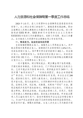 人力资源和社会保障局第一季度工作总结2024年1-3月,县人力资源和社会保障局在县委县政府的领导下,在上级业务部门的指导下,围绕县委发展战略,紧扣全面建设人民群众满意的公共服务体系建设这条主线,深入贯彻党的XXX精神、XXX新时代中国特色社会主义思想和XXXXXX对经济工作的重要指示,创新工作思路、突出工作重点,全力推进人力资源和社会保障各项工作有效开展。一、精准发力,就业创业有效开展全县城镇新增就业X人,城镇失业人员再就业X人,其中就业困难对象再就业X人,城镇登记失业率控制在2.4%以内。完成各类培训X人,其中青年劳动者技能培训402人,创业培训X人,品牌培训X人,实现成功创业就业14人,发放创业担保贷款132万元。一季度我县农村劳动力转移输出规模保持在X万以上,实现劳务收入X亿元。一是丰富载体,倾力帮扶就业。建立健全用工信息周报、月报定期发布制度,在报刊杂志、门户网站发布招工信息及公告,已发布就业岗位信息30余条,提供就业岗位2433个。扎实开展春风送岗位、送岗位进园区、进企业专场招聘会等活动。今年已举办各类招聘会共X场,参会企业近200家,提供岗位X个,求职人数X余人,达成意向协议X人。二是丰富内容,强化技能培训。以实际操作和职业素质为主要内容,坚持定工种、定区域、定数量、定机构四定办法,围绕县域经济发展开展技能培训,增强就业创业能力。三是突出重点群体,落实就业扶持。突出就业困难人员、农民工、退役人员等重点人群的就业援助,落实就业扶持政策。开发就业困难人员公益性岗位X个;验收申报高校毕业生创业补贴合格3人;为14户创业者提供132万元的财政贴息的创业担保贷款。四是宣传扩面,增强失保职能。为X人次失业人员代缴医疗保险费110.87万元;为4人次发放技能提升补贴0.76万元;动态掌握企业就业失业情况,监测企业11家,监测人数达到X人。五是加强协调,编制拟定了《县促进返乡创业三十条措施》,并经县政府常务会议通过,即将出台。二、聚焦重点,社会保障工作全面推进1-3月,企业养老保险征缴收入X万元,支付待遇4.1亿元;城镇职工基本医疗保险征缴收入X万元,支付待遇X万元;城乡居民基本医疗保险征缴收入2.74亿元,支付待遇1.13亿元;失业保险征缴收入X万元,支付待遇431.87万元;工伤保险征缴收入X万元,支付待遇X万元;生育保险征缴收入X万元,支付待遇X万元。城乡居民社会养老保险覆盖人数X万人。一是加大扩面征缴力度。通过多渠道、多方式大力宣传社保政策,参保单位及参保人员积极性进一步增强。1-3月,新增参保单位X个,新增11个建筑企业参加工伤保险。二是社会保险费征管职责划转工作顺利推进。通过数据交换、政策沟通、业务对接等方式,对社保系统中涉及的1200余个参保单位有关数据进行清理并对接上传。三是提升离退休人员社会化管理服务水平。对全县离退休人员及在县境内居住的异地离退休人员进行了养老金领取资格认证,认证率达X%;及时足额代发企业退休军转干部生活困难补贴、春节慰问费;为全县生活困难、低保、伤残退休职工送去春节慰问。四是全力推进城乡居民医保征收工作。将城乡居民医疗保险纳入统征范围,实行银行代扣代缴的征缴模式,并在原有商业银行、邮政储蓄银行代扣代缴的基础上,新增了农商银行为代扣代缴银行,城乡居民基本医疗保险参保缴费人数达到X万人,参保缴费率达到X%。五是狠抓社保基金监管,严格执行基金征缴、待遇支付等各个环节的内部监管审批制度,确保基金安全。三、激发活力,人事人才工作规范有序一是摸清底数,掌握各类人员动态数据。切实做好X名公务员(参公人员)、X个事业单位X名事业人员、X个公有经文可居文库——海量学习资料,手机电脑均可下载www.wenkeju.com济企业X名工作人员的相关数据统计。二是安全有序,推进招考招录工作。按照省市招考的相关要求,及时与县委编办对接,2023年上半年公开考试录用30个乡镇公务员、面向社会招录340名教师已进入招考招录程序,完成第一批直接考核招聘中小学教师3人,从大学生志愿服务西部计划项目人员中直接考核招聘乡镇事业单位工作人员X名,争取到X个高校毕业生三支一扶招录岗位。三是把握时间节点,强化年度考核备案工作。目前,已完成政府口100个单位一般公务员(参公人员)、200个事业单位人员年度考核备案工作;四是加强专业技术人员管理。完成了2023年度X名机关事业单位工人技术等级考核技师资格证书的办理和发放工作;配合县委组织部、县人才办开展2023年度县优秀X州英才(团队)资助项目中优秀专业技术人才的资格初审、联合会审、专家评审工作;办理2023年度评审的X名中小学教师高级、中级专业技术资格证书和中小学教师聘用证书;启动全县企事业单位专业技术人员2023年继续教育公需科目和面授培训工作。四、维稳