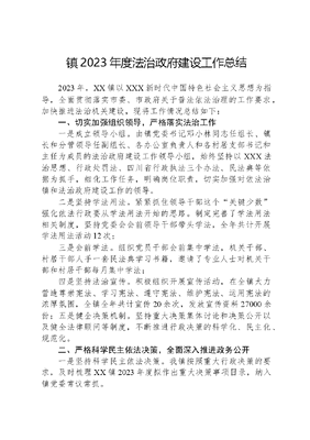 镇2023年度法治政府建设工作总结2023年,XX镇以XXX新时代中国特色社会主义思想为指导,全面贯彻落实市委、市政府关于普法依法治理的工作要求,加快推进法治机关建设,现将工作情况总结如下:一、切实加强组织领导,严格落实法治工作一是成立领导小组。由镇党委书记邓小林同志任组长、镇长和分管领导任副组长、各办公室负责人和各村居支部书记和主任为成员的法治政府建设工作领导小组,始终坚持以XXX法治思想、行政处罚法、四川省行政执法三个办法、民法典等依据为抓手,细化工作任务,明确岗位职责,切实加强对依法治镇和法治政府建设工作的领导。二是坚持学法用法。紧紧抓住领导干部这个关键少数强化依法行政要从学法用法开始的思路。制定完善了学法用法相关制度,坚持党委会会前领导干部带头学法,全年共计开展学法用法活动12次;三是会前学法。组织党员干部会前集中学法,机关干部、村居干部人手一套民法典学习书籍,邀请了专业人士对机关干部和村居干部每月集中学法;四是坚持法治宣传。积极组织开展宣传活动,在全镇大力营造尊崇宪法、学习宪法、遵守宪法、维护宪法、运用宪法的浓厚氛围,全镇全年共计宣传20余次,发放宣传资料27000余份;五是健全决策机制。坚持重大决策集体讨论和决策公开以及健全法律顾问等制度,不断推进行政决策的科学化、民主化、规范化。二、严格科学民主依法决策,全面深入推进政务公开一是坚持科学民主依法决策。我镇按照重大行政决策的要求,及时梳理XX镇2023年度拟作出重大决策事项目录,纳入镇党委常议常抓。二是加大政务公开力度。全面落实国家关于决策、执行、管理、服务、结果公开要求,及时、准确、全面地公开政务信息,依法依规妥善处理政府信息公开申请。三是做好重要政策解读,主动回应社会关切。积极参加广播电视局阳光问廉节目,对社会各界对我镇各个领域的政策问题及时进行解惑释疑。四是编制并公布了政府信息公开指南、目录,明确公开范围和事项并及时更新。2023年度按照上级一月一条法治政府信息报送的要求逐一落实,并做好政府信息申请公开工作。三、强化法治政府建设,加强法治宣传一是充分利用广播、专栏、墙画、横幅、张贴等宣传载体大力营造法治政府建设氛围。充分利用镇村干部会、村社群众大会、坝坝会、进村入户走访、逢场日集中宣讲等方式,加强法治政府建设宣传,提升对法治政府建设的政策知晓度。针对2023年新修订的宪法,大力宣传宪法所确立的国家根本制度、根本任务、基本原则、活动准则,教育和引导群众牢固树立宪法意识、增强宪法观念,正确认识宪法赋予的主体地位,自觉依照宪法法律行使权利或权利,维护宪法尊严,保障宪法实施。二是建立党组成员学法和培训制度,制订领导干部年度学法计划。2023年度内举办了3期领导干部法治专题培训班,11期领导班子法治会前学法。提高政府工作人员依法行政意识和依法行政能力,把普法工作纳入全镇工作总体布局,扎实推动清单工作法,层层压实责任,助推法治政府建设相关工作落地落实。三是积极组织行政执法人员参加综合法律知识、专门法律知识等专题培训。落实国家机关谁执法谁普法责任制,按要求向市普法办报告普法工作情况和年度普法计划;按要求参加市普法办举办的全市国家机关谁执法谁普法履职报告评议会。把普法工作纳入全镇工作总体布局,根据本镇特点制定普法责任清单,并向社会公布。四是为进一步提高我镇机关干部XXX法治思想和依法办事能力,促进干部职工带头遵纪守法、带头敬畏国法、带头管好自己,我镇积极组织机关干部开展法纪知识学习和考试,通过法纪学习和考试,增强了我镇机关干部遵纪守法意识,进一步推动了依法行政工作的深入开展。五是为深入贯彻落实党中央关于深入学习宣传和贯彻实施宪法的部署,同时,为实现XX镇安全生产形势持续稳定营造良好的安全环境和舆论氛围,全面落实依法治国基本方略,推进法治政府建设,XX镇政府每月在三个社区轮流组织开展一场集中普法宣传活动。在各村利用坝坝会、座谈会等形式每月开展不少于1次的法制宣讲活动。四、狠抓矛盾纠纷多元化解任务落实一是立足XX镇实际,整合资源,集聚合力,拓宽途径,抓好矛盾纠纷多元化解各项具体任务的落实。整合调解资源,抓好人民调解工作。在镇级,依托镇综治中心和网格化管理体系,整合基层调解资源,建立镇矛盾纠纷多元化解中心,负责辖区内矛盾纠纷多元化解工作,指导做好网格化管理建设。二是充分发挥基层党支部战斗堡垒作用,做好调解工作。在镇重点企事业单位,依托司法所,逐步健全和完善人民调解委员会,依托村人民调解委员会,设立调解工作室,建立人民纠纷调解微信群,确定镇上的干部、村社干部成为人民调解员,做好镇上调解工作,达到组织、制度、工作、人员四落实。三是逐步建立专业性、行业性调解组织,设立调解工作室确定专兼职人民调解员,拓宽纠纷化解渠道,实现矛盾纠纷多元化解。各类调解组织要按照人民调解法的规定