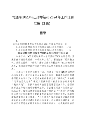 司法局2023年工作总结和2024年工作计划汇编(3篇)目录1.区司法局2023年度工作总结及2024年度工作计划22.县司法局2023年工作总结和2024年工作计划.103.县司法局2023年工作总结及2024年工作计划.19区司法局2023年度工作总结及2024年度工作计划今年以来,XX区司法局深入学习贯彻XXX法治思想,聚焦营商环境优化提升一号改革工程,围绕打好经济翻身仗、亚运攻坚仗两仗目标以及市局提出的1122的总体思路,推动法治建设和司法行政各项工作在新起点上实现新发展。全局上下争先创优勇争一流,形成了一批有XX辨识度的标志性成果。获评市局综合督导优胜单位;指导蔡马社区创建全国民主法治社区;长庆司法所被命名为省枫桥式司法所;运河法治文化带蝶变工程获评浙江省县乡法治政府建设最佳实践。承接司法部司法协理员管理试点工作、全国社区矫正工作培训班现场教学工作、全省社区矫正信用矫正试点工作;编制法律指引打造基层行政执法一本通的经验做法得到丁狄刚副市长和区委李志龙书记的批示肯定。探索构建基层商圈大普法格局、三个聚焦推进行政争议解决提质增效的做法得到冯晶区长的批示肯定。司法部法治调研局、社区矫正管理局教育矫正处到杭州调研考察时,对我局社区矫正工作和法治建设工作给予了一致好评。长庆司法所作为全省司法行政系统的唯一代表,在全省坚持和发展新时代枫桥经验大会上作交流发言。一、法治XX建设再上台阶。根据法治XX考核办法,对76家单位开展考评工作,并将结果纳入区综合考评。推进法治化营商环境改革工作开展,召开法治化营商环境建设背景下法治监督体系建设调研推进会,研究起草全区法治营商环境优化提升方案和年度工作要点。组织23家法治杭州考评指标牵头单位开展业务培训,分析近年考评扣分情况和考评体系,解读指标和加分项。对区科技局、区教育局等6家单位开展法治督察,反馈问题8个,压实法治建设责任。二、法治政府建设守正出新。扎实开展街道合法性审查改革攻坚工作,成立了区级合法性审查中心,并在辖区18个街道同步设立合法性审查中心,进一步提升合法性审查的工作质效。全市率先编制推行《大综合一体化行政执法工作法律指引》,发放给1+5执法队伍和全区18个街道。在全区范围内(含街道)组织开展行政处罚结果信息公开情况、行政裁量权基准适用情况、涉企执法多头检查、重复检查、平台经济行政执法监督等专项监督,引导企业依法合规经营。对全区行政许可案卷5715件,行政处罚案卷8702件开展案卷评查,18个街道案卷作为评查重点。三、两高一低整治成效明显。联合文晖街道,在新和平商务社区创建全市首个行政复议5S助企工作站。主动引导当事人通过行政复议化解行政争议,行政复议诉讼收案比达3.3:1。加大行政争议化解力度,落实行政复议每案必调,化解行政争议105件。四、法治保障能力显著提升。建立XX区营商法律服务中心,实现全区17个商务社区法律服务全覆盖。创新推出盈运通法律服务项目,召集5家头部律所制定出台《盈运通企业法律风险防范指引》,提供公司章程、股权结构等10项法律服务,对应出台《盈运通法律服务清单》,着力解决区重点项目企业的法律服务问题。开展企业法律风险防范主题沙龙,围绕医美、电竞、文创、医药生物、知识产权、直播、现代制造业7个赛道,开展专题培训。推进电竞产业合规体系建设,编制电竞产业合规指引,在杭州电竞中心挂牌成立电竞产业合规中心,培育浮云科技等示范性标杆企业,引导电竞企业依法合规经营。五、普法依法治理走深走实。联合康桥街道、运河集团聚力打造4000余平方米民法典主题公园。有序推进公民法治素养观测点建设,建立区级公民法治素养观测点10个。联合米市巷、康桥等街道开展XX区法迎亚运普法进社区等系列文艺演出活动200余场,发放普法宣传资料3万余份。原创法治沙画《普法日记之网络风波》荣获全市反诈宣传视频特等奖。进一步加强数智普法工作,开发墅企普法小程序应用,积极推动区、街道、社区三级统一的融媒体普法数字矩阵建设。聚焦法治最小单元,推进法治国企建设纵深项目荣获全省十大普法影响力事件。运河法治文化茶馆荣获第二批浙江省法治宣传教育基地。运河法治文艺创作表演中心荣获杭州市首届普法达人团体。原创法治沙画《普法日记之网络风波》荣获全市反诈宣传视频特等奖,在学习强国点击量13万余人次,在国家反诈中心视频号转发1.1万人次。六、特殊人员管理多管齐下。全力做好亚运、亚残运会期间的安全稳定工作,充分调动各级力量,形成职责明晰、全员参与的维稳安保工作体系。配套制定《社区矫正舆情应急管理实施方案》《社区矫正突发事件应急处置预案》《社区矫正纾困帮扶管理暂行办法》,对困难社区矫正对象、安置帮教人员进行看望。七、人民调
