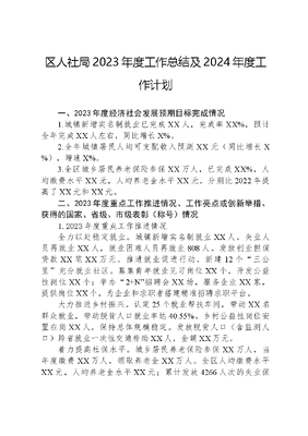 区人社局2023年度工作总结及2024年度工作计划一、2023年度经济社会发展预期目标完成情况1.城镇新增实名制就业已完成XX人,完成率XX%,预计全年完成XX人左右,同比增长X%。2.全年城镇居民人均可支配收入预测XX元(同比增长X%),增速X%。3.全区城乡居民养老保险参保XX万人,已完成XX%,人均缴费水平XX元,人均养老金水平XX元,分别比2022年提高了XX元和XX元。二、2023年度重点工作推进情况、工作亮点或创新举措、获得的国家、省级、市级表彰(称号)情况1.2023年度重点工作推进情况全力以赴稳定就业。城镇新增实名制就业XX人,失业人员再就业XX人,就业困难人员再就业808人。发放创业担保贷款XX笔XX万元。推进就业促进行动,新建12个三公里充分就业社区。募集青年就业见习岗位XX个,开发公益性岗位XX个;举办2+N招聘会XX场,服务企业XX家,提供岗位XX个,为企业和求职者搭建精准招聘求职平台。大力推进乡村振兴。认定25个就业帮扶车间,带动XX名群众就业,带动脱贫人口就业率达40.55%。乡村公益性岗位安置在岗XX人,保持总体规模稳定。发放脱贫人口(含监测人口)跨省就业一次性交通补助XX人,金额XX万元。着力提高社保水平。城乡居民养老保险参保XX万人,当年度缴费XX万人,领取养老金XX万人。全区人均缴费水平XX元,人均养老金水平XX元;累计发放4266人次的失业保险金XX万元,发放XX人次的失业补助金XX万元,为214人发放技能提升补贴XX万元。受理工伤认定申请196件,工伤保险待遇核定145人次XX万元;大力推进社会保障卡居民服务一卡通建设,全区社会保障卡持卡人数达到XX万人,第三代社会保障卡累计发放XX万张。聚力建设人才队伍。稳妥开展人事管理工作,共招聘50名事业单位工作人员、40名中小学教师、60名特岗教师和54名区内选调教师;持续推进深化职称制度改革,强化专业技术人才队伍建设,审核教育类、工程类、经济类、卫生类专业技术人员570人;开展职业技能培训,不断提高劳动者技能水平,开展职业技能培训161个班次,培训合格XX人,新增技能人才XX人。构建和谐劳动关系。畅通投诉渠道,细化欠薪案件现场处置流程,妥善解决欠薪问题。受理劳动争议案件202件,涉案金额XX万元,结案180件,调解率达60%以上,时效内结案率达到100%。处理各类欠薪线索共计1633件,为XX人解决工资XX万元。已建立并推广使用XX市智慧劳动监察平台以及微信小程序,通过智慧化平台进行建筑工地劳务实名制、工资发放和欠薪案件受理、调度与处理等相关工作,实施专人负责并闭环办好平台投诉案件。2.工作亮点或创新举措挂牌成立颍东区接您回家驻苏州工作站,与苏州市吴中区人社局现场签订了人力资源供需对接合作协议,建立常态化人力资源对接机制,支持人力资源产业园建设,开展三接三送常态合作,充分发挥资源优势,为颍东引进急需紧缺人才,宣传引导苏州优质企业到颍东投资兴业。持续开展招才引智系列活动,3-4月份共举办四期,分别到安徽理工大学、巢湖学院、合肥学院、安徽新华学院、安徽工业大学、安徽农业大学、安徽大学七所省内高校举办了招聘活动,搭建毕业生与企业无缝对接平台,打通毕业生就业的最后一公里,满足用人单位多层次人才需求。区内50余家优质企业积极参与,提供涵盖化工新能源、食品农产品、新型材料、智能制造、设计服务等各类岗位XX个,活动期间共收到求职简历XX余份,达成意向370人。9-10月组织17家企业分2期3场赴南京理工大学、南京农业大学、苏州大学开展招才引智进高校及颍东地方推介宣传活动。提供岗位986个,收到简历838份,达成意向468人。3.获得的国家、省级、市级表彰(称号)情况2023年XX市实施妇女儿童发展规划先进集体三、存在的主要问题不足和困难挑战1.基层服务人员配置不足。我区在12个乡镇街道、117个村居社区,建立了覆盖区、乡镇、村居的三级公共就业服务机构,但除河东、向阳街道外,乡镇村居公共就业服务人员均无正式编制,人员队伍主要依靠基层特岗和编外聘用人员来充实,同时基层任务重、工资低,窗口服务人员流动性大,目前存在人员空缺的问题。2.城乡参保扩面任务艰巨。今年以来,全区参保人数减少了0.3万人,若按此速度下降,年底前将难以完成年度参保任务。3.企业社保覆盖面低。我区多是小型、微型企业,由于企业法人对参保政策的不了解以及参保意识不强烈的问题,导致我区企业参保率相对较低。4.人才队伍结构不够优化。从我区人才结构上来看,高层次专业技术人才数量主要集中在教育和卫生行业,其他领域高层次人才所占比重低。四、2024年度重点任务、具体工作举措和预期目标1.稳定就业大局。2024年,全区城镇居民人均可支配收入增长不低于全市平均水平,城镇新增实名