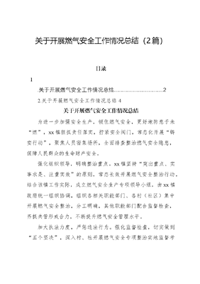 关于开展燃气安全工作情况总结(2篇)目录1.关于开展燃气安全工作情况总结..22.关于开展燃气安全工作情况总结4关于开展燃气安全工作情况总结为进一步加强安全生产,锁住燃气安全,更好地防患于未燃,xx镇狠抓责任落实,拧紧安全阀门,常态化开展铸安行动,聚焦人员密集场所,全面排查整治燃气安全隐患,保障人民群众的生命财产安全。强化组织领导,明确整治重点。xx镇坚持突出重点、实事求是、注重实效的原则,常态长效开展燃气安全整治行动,结合该镇工作实际,成立燃气安全生产专项领导小组,由xx镇政府统一组织协调,组织各相关职能部门、各村(社区)集中开展燃气安全整治,分工明确,其他职能部门配合监督检查,齐抓共管形成合力,不断提升燃气安全管理水平。加大执法力度,严惩违法行为。强化监督检查,切实做到五个坚决,深入村、社开展燃气安全专项整治实地监督考核,重点排查使用燃气的餐饮行业(如美食城、大排档、烧烤店、小吃摊等)的用气条件、调压器、管道老化、通风条件、位置摆放是否达标,坚决依法处罚未安装可燃气体报警器的餐饮场所,对存在重大隐患、不符合安全用气条件的餐饮等人员密集场所,坚决按规定停止供应燃气,严厉打击不加臭味剂、违规供气的燃气企业,严格倒查燃气企业未认真入户检查而发生事故的相关责任。落实制度管理,制定应急预案。强化应急培训,提高自救能力。学习和掌握消防安全知识,了解火灾的成因和预防方法,增强从业人员安全意识,提高急救人员、从业人员和居民应对燃气安全事故的能力,确保在突发情况下迅速采取有效措施。加强火源管理,定期维护消防设施。严格控制火源,避免火源附近存放易燃物品,定期检查家里的燃气、电器、火源等,确保工作状态良好,做好消防设施维护,确保灭火器、报警器、消防栓等完好有效,注明安全提示,漏气问题未处理严禁使用,发现漏气,按照提示三步走,关闭阀门、开门(窗)通风、即刻拨打xxx,定期更换老化管道、灶具,及时消除安全隐患。加强燃气安全宣传教育,提高公众燃气安全意识。以燃气安全事故为案例,组织开展警示教育,警示各燃气用户提高燃气安全意识,熟练掌握用气安全常识和应急应对措施。通过线上政府网站和线下分发燃气安全一封信、张贴海报、横幅等多种渠道,提高公众用气安全常识。下一步,xx镇将持续加强对辖区重点领域、重点行业燃气安全监管力度,不留盲区、不留死角,持续开展燃气安全检查工作,切实筑牢安全生产防线。关于开展燃气安全工作情况总结一是按xx市商务局要求动员各镇街向辖区餐饮经营主体下发了《致xx区餐饮经营单位责任人和其家人的一封告知书》、《经营单位安全生产责任人工作职责》、《xx市燃气安全检查操作手册》、《餐饮经营单位燃气安全检查重点事项》等燃气安全检查操作知识手册,要求餐饮经营负责人签订责任书,督促餐饮经营主体每周对从业人员进行燃气安全应急演练培训,收集留存演练照片作为重点检查事项。目前,已在全区各镇街向餐饮经营主体开展燃气安全培训告知,收集餐饮经营主体签订责任书xxxx余份。二是我局按照省、市燃气安全相关工作要求,结合实际制发《xx区餐饮经营主体燃气安全整治专项方案》和《关于报送餐饮经营主体安全员的通知》,督促餐饮经营主体建立安全生产管理制度,明确燃气安全责任人。目前,已收集到全区各镇街餐饮经营主体安全员信息xxxx余条,进一步健全了餐饮经营主体安全防范机制。 下一步,我局将结合省、市餐饮经营主体燃气安全整治行动要求,对照阶段任务目标对xx区餐饮经营主体开展专项整治行动,进一步压紧压实企业安全生产主体责任,推动燃气安全工作有序、有力进行。重点落实餐饮经营主体消防四个能力建设,完善防火巡查、隐患排查、吹哨人预警、基础设施维护等安全制度。同时,继续强化对餐饮经营主体从业人员的燃气安全相关培训,积极通过举办讲座、宣传员上门宣传、定期开展应急演练、联合多部门点对点指导等方式有效提升从业人员、广大群众的燃气安全意识和应急避险防范能力,切实保障人民群众生命财产安全,全力维护全区安全环境。