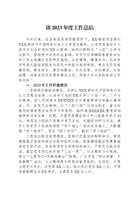 镇2023年度工作总结今年以来,在县委县政府坚强领导下,XX镇政府坚持以XXX新时代中国特色社会主义思想为指导,认真贯彻落实十九届历次全会和党的XX大精神,始终以新时代三农工作为总抓手,坚持稳中求进的总基调,牢牢守住保障国家粮食安全和不发生规模性返贫两条底线,立足镇情,精准发力,扎实有序开展巩固拓展脱贫攻坚同乡村振兴有效衔接,常态化开展疫情防控,粮食安全、撂荒地整治、乡村发展、乡村建设、乡村治理、村集体经济发展等重点工作,现将今年以来的政府工作报告如下。一、2023年工作开展情况一是持续加强政治建设。坚持以XXX新时代中国特色社会主义思想为指导,认真学习党的XX大和二十届一中、二中全会精神,深入贯彻落实XXXXXX对甘肃重要讲话和指示精神省、市、县党代会精神,以三抓三促行动为抓手,着力加强党的最新理论成果学习和宣传,始终将XXXXXX重要讲话精神学习作为第一议题,开展党委理论学习中心组集中学习23次,每周至少组织干部集中学习3次,定期组织研讨交流,教育引导党员干部深刻领悟两个确立的决定性意义,不断增强四个意识、坚定四个自信、做到两个维护。二是推动基层党建增效。坚持大抓基层的鲜明导向,聚焦增强基层党组织政治功能和组织功能,紧紧围绕基层党建基础建设攻坚行动,有效推进党支部建设标准化,严肃党内政治生活,基层党支部扎实开展三会一课,以主题党日为载体,建立主题党日+党群说事会制度,广泛开展群众说事、干部解题活动,大力整顿提升软弱涣散党组织,至目前,开展主题党日9次,讲党课XX人次,轮训农村党员XX人次,开展说事解题活动XX场次,志愿服务XX余人次。三是促进粮食生产增收。坚决扛起保障粮食生产的政治责任,狠抓面积落实及应种尽种,与村两委签订粮食生产安全目标责任书。紧盯全镇粮食播种面积稳定在XX9亩,产量稳定在XX吨以上,落实地膜、种子、植保、沃土、农机五大措施,强化技术指导,成立病虫害防控工作小组,建立镇农技人员包抓村组责任制,为农户补助农药共XX箱,一喷三防补助农药落实发放农户及合作社共补助XX亩,精准落实耕地地力保护补贴面积XX亩,发放补助资金XX万元,完成种植业投保XX亩,排查摸底可以整治复耕的有XX亩,完成整治复耕复种XX亩;落实大型农机具购置补贴XX台次,补助资金XX万元;落实秋粮作物一喷多促项目补助农药XX箱XX公斤,发放农户及合作社共补助XX亩。在丹麻流域新建高标准农田XX亩,科学配置产业路、管涵等基础设施,正在加快建设进度,预计在秋播时80%的面积投入使用。四是贯通落实四个不摘。全镇已稳定脱贫户XX户XX人,监测户XX户XX人,风险未消除监测户XX户XX人,风险消除率XX%。坚持六必查六必访重点人群和特殊群体,大力宣传一键报贫,今年新识别监测对象3户18人。已针对性的制定一户一策帮扶计划。落实旱作农业种植到户补助XX亩、资金XX万元,马铃薯庭院经济项目11户、资金XX万元,基础母牛XX头、资金X万元,牛犊XX头、资金XX万元,基础母羊XX只、资金XX万元,羊羔XX只、资金X万元,中蜂XX箱、X万元。铡草机XX台,割草机X台,雨露计划项目补助脱贫户XX人、资金XX万元,持续选聘已脱贫劳动力从事村级扶贫公益性岗位XX人,2023年各式各类培训人次达到XX人,妇联家政培训XX人,脱贫劳动力培训达到XX人。脱贫务工交通补贴共计发放XX人。五是稳步发展优势产业。坚持党建引领产业发展,积极融入全县4+2产业布局,按照农业优先、生态优先的发展思路,着力优化良种小麦、饲料玉米、马铃薯种植,兼顾牛羊养殖和贩运,逐年推进分布式光伏发电。去年秋季在岳山流域(岳山村、吕湾村、唐刘村)集中种植兰大211良种繁育冬小麦XX亩,辐射带动杨渠村、XX村、丹麻村、五方村、阳洼村种植XX亩,秋季种子公司比普通小麦高于XX元收购种子。今年以来,种植饲料玉米XX亩(含籽实玉米XX亩);集中连片种植陇薯7号马铃薯XX亩、落实补助资金XX万元;在阳洼村、樱桃沟村、丹麻村完成苹果提质增效XX亩、落实补助资金XX万元;唐刘村集中种植独活XX亩、落实补助资金XX万元;实施斜头村花椒增效XX亩、落实补助资金X万元;实施阳洼村大蒜种植XX亩、落实补助资金XX万元;岳山村辉昊合作社购进能繁林麝XX只、落实补助资金XX万元;已完成青贮饲料XX亩XX吨。六是村集体经济有效增收。建立班子成员包抓村集体经济工作机制,灵活应用N+3+1村集体经济发展模式,通过农资代购、购牛卖肉、消费扶贫等方式增加经营性收入,统筹太极集团退股资金和其他资金XX万元,安装分布式光伏发电项目5处,总装机XX千瓦,鼓励各村发展党建小菜园,共种植西葫芦XX亩,乌龙头XX亩,西瓜XX亩,菜心XX亩、萝卜XX亩、葵花X亩、紫苏X