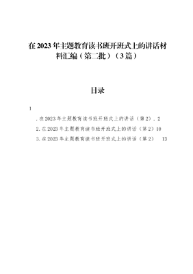 在2023年主题教育读书班开班式上的讲话材料汇编(第二批)(3篇)目录1.在2023年主题教育读书班开班式上的讲话(第2).22.在2023年主题教育读书班开班式上的讲话(第2)103.在2023年主题教育读书班开班式上的讲话(第2)13在2023年主题教育读书班开班式上的讲话(第2)同志们,根据第二批主题教育计划安排,今天我给全体党员上一次党课,我的授课题目是以考评树好导向促进追赶发展。今年以来,我们深入学习贯彻党的XX大精神,以学习贯彻XXX新时代中国特色社会主义思想主题教育为契机,按照上级党委指示要求,持续锚定各项重点工作走在前列、各项关键指标增速稳定居上的目标定位,主动适应新的形势发展变化,充分发挥党政监督指挥棒作用,着力优化推进高质量追赶发展的体系,从作风建设破题,树实干导向,以新发展理念引领政绩考核新方向,推动上下形成了人人出力、人人出彩的竞相发展新格局,取得一定成效,受到市委第*指导组的高度肯定,结合第二批主题教育实际情况,我重点围绕如何做才是树好导向,促进发展给大家一起交流。一、完善顶层设计,做到全体系考评。一是树好导向引领。始终秉持发展为要的追赶导向、项目为王的工作导向、效能为先的作风导向、奖罚分明的考评导向,统筹整合党政督考资源,科学设置党建保障和经济工作两大指标体系,对各项工作进行全景监测、实时调度、过程管控、跟踪推进,引领各级各部门聚焦高质量追赶发展履职尽责、攥拳发力。在考核内容上突出国之大者、行之要者。二是围绕中心任务。服务大局,围绕贯彻落实党的XX大精神和XXXXXX重要讲话重要指示批示精神,以及党中央和省委决策部署,聚焦巩固拓展脱贫攻坚成果、乡村振兴、生态环保、产业发展、工业经济、项目建设、党的建设等大事要事,完善共性指标+个性指标+加减分项指标体系,对主动创稳、引大引强引头部、优化营商环境攻坚突破年、爱心扶孤助残济困和作风顽疾百日整治等省、市部署的重大行动,单独设置考核板块,坚持能量化的工作全部指标化、不能量化的工作全部有标准,既考核各自指标的净增长,又考核对全市工作的净贡献,倒逼实现人人担责任、人人扛指标、人人促进位。三是构建考核网络。在考核范围上突出条块结合、纵横覆盖。横向上,将县区、市直部门、园区、市属国有企业、中央及省属在定单位全部纳入考核范围,一体评价、分类排名,实现考核对象全覆盖、绩效评价全覆盖、结果应用全覆盖。纵向上,坚持上提两级评比排名、下沉一级考核应用,将全市乡镇划分为县区政府所在地、重点集镇、川区乡镇和其他乡镇x个类型,分类设置指标体系,通过位次系数法、五段赋分法等方式进行提级考核评比,梯次形成以农户支撑村民小组、村民小组支撑行政村、行政村支撑乡镇、乡镇支撑县区、县区支撑全市的全员追赶格局。四是优化考核方式。在考核方式上突出集约高效、减负提质。充分发挥互联网+督查优势,建立一体化督考机制,利用信息化手段让数据多跑路,实现目标管理、过程控制、考核奖惩有机衔接,既有效统筹了各级督查考核力量,又保证了抓落实的系统性、连续性、时效性,大幅压减以往名目繁多、各自为政的检查考核,让基层工作人员从繁琐的陪同迎检、台账填报、数据统计中解脱出来,腾出更多时间和精力抓落实、促发展、争进位。在考核应用上突出立体穿透、精准公开。通过定性与定量相结合、增量与增速相结合、正面与负面相结合,在全面考核党建保障和经济工作两大类指标完成情况的基础上,统筹考核省市领导批示办理、网民留言和民生实事办理、各级各类监督考核反馈问题整改、信访积案和重大项目历史遗留问题化解、营商环境建设、政务服务、信息报送、值班值守、受国家省上表彰奖励等情况,以自动汇总、自动核算、自动生成的方式形成综合排名和单项榜单,立体化综合评价各级各部门发展实绩,全方位客观反映追赶发展赛道上的实时位置,做到干得有方向、追赶有目标。二、完善闭环管控,做到全方位落实。坚持管事与管人相结合,按照统一规划、分级管理、安全可靠、数据规范原则,整合各方督考资源,完善党政督考平台数据分析、任务分解、点击调度、督查督办、线上预警、考核评价等基础功能,通过线上督事、线下督人、督考合一的方式,对各项工作实行全流程、全要素、全链条闭环管控。一是对照责任促落实。将各级领导干部作为督考重点对象,坚持从市级领导严起,对联系包抓乡村振兴、结对关爱、包联企业、党建联系点等工作进行定期评比通报。层层建立党委政府主要领导主抓垫底指标、班子成员包抓重点区域和重点指标、部门领导协抓弱势指标的三抓责任制,对督促调度、业务指导、破难疏堵、汇报衔接等工作作出定性定量指标化要求,并按照季度考核结果适时优化调整,确保将最强力量用在最薄弱领域、最靠后指标上。二是对照清单促落实。健全完善干部岗位