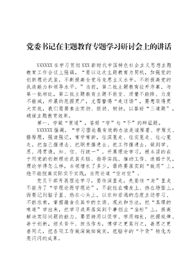 党委书记在主题教育专题学习研讨会上的讲话XXXXXX在学习贯彻XXX新时代中国特色社会主义思想主题教育工作会议上强调,要以这次主题教育为契机,加强党的创新理论武装,不断提高全党马克思主义水平,不断提高党的执政能力和领导水平。当前,第二批主题教育拉开序幕,与第一批相比,第二批主题教育主题不能变、质量不能降、力度不能减,开展的范围更广,尤需警惕走过场,要想取得更大实效,我们需要拿出实劲、狠劲、韧劲,以答好三道题,确保主题教育效果。第一,学做贯通,答好学与干的辩证题。XXXXXX强调,学习理论最有效的办法是读原著、学原文、悟原理,强读强记,常学常新,往深里走、往实里走、往心里走,把自己摆进去、把职责摆进去、把工作摆进去,做到学、思、用贯通,知、信、行统一。开展理论学习,根本目的在于用党的创新理论武装头脑、指导实践、推动工作、造福于民,理论学得怎么样,本领增长了多少,最终要落实到致用上,绝不能脱离实际实干实践,坐而论道空对空。党员干部开展理论学习,要往深里走,先要往身里走不能为了学理论而学理论,不能挂在嘴皮上、热在场面上,而要记到脑子里、热在心头上,以求知若渴的态度主动学习、不断求索,掌握蕴含在其中的立场、观点和方法,把真理的味道学出来,把学习成果落实到干事创业坐标上,提高解决实际问题的能力。要坚持用以促学、学用相长,把握规律、善于创新,埋头苦干、担当作为,博学之更笃行之,善思之更善用之,把各项工作做深做细做实,把脑中的干货转化为亮闪闪的成果。第二,调研落地,答好调与研的论述题。毛泽东同志曾指出,调查就像十月怀胎,解决问题就像一朝分娩。调查和研究是紧密相连的两个部分,若调查浮光掠影,则研究无锅下米;若研究不深不透,则成果无法转化。衡量调查研究效果好不好,关键要看调查研究的实效,看调研成果的运用,看能不能把问题解决好。如何发挥调研成果的最大价值?真调研、实调研是调研成果转化运用好的前提和基础,成果运用也是调查研究的最终落脚点。党员干部要练好调查研究这个基本功,准确把握调查研究的重点、难点,抓住上级最关注和老百姓最关心的问题,真正沉到一线、深入田间地头、走进群众家中,防止调查多研究少、情况多分析少、对策多转化少,对调研反映出来的共性和个性问题进行系统研究和分类处理,清单式推进,直至落实。要切实将主题教育的学习成果聚焦推动高质量发展上来,不断从千万工程浦江经验晋江经验人才九条等典型经验中汲取谋划事业的坚实力量,切实提升改革破题能力、统筹谋划能力、服务为民能力、调查研究能力,做到点上攻得破、面上铺得开,以好的工作成效让人民收获更多生活的幸福感、成就感、获得感。要建立健全成果跟踪反馈机制,加强对调研成果转化方面的新情况、新问题研究,逐步解决,把调研成果转化情况作为检验主题教育成效的重要标准,推动调查研究提质增效。第三,查改互动,答好检与改的应用题。现实中,个别干部谈问题色变,碰到问题就想推开,或是把问题往小了说,或是轻描淡写一笔带过,或是应付了事扔在一旁,没有把自己摆进去,把责任摆进去,生怕问题缠上身,把问题视为麻烦。这样的态度和行动必然影响主题教育的深入开展。人患不知其过,既知之,不能改,是无勇也。XXXXXX强调:坚持边学习、边对照、边检视、边整改,把问题整改贯穿主题教育始终,让人民群众切实感受到解决问题的实际成效。检视整改最终要落到实实在在解决问题上。党员干部要涵养找差距的自觉,学会做自己的杠精,多与自己的问题较较劲、较较真,把平面镜换成显微镜,再找找自身灵魂深处易隐藏的问题,再查查细微处容易忽视的问题,力求把自己的问题暴露出来。要正视问题、直面问题、改正问题,发扬自我革命精神,以刮骨疗毒的勇气向自己的症结开刀,解决好思想根子、作风层面的问题,对于群众反映强烈的问题,要拿出绣花功夫,以滴水穿石的韧劲,一件件解决到位,,在久久为功中不断验证检视整改的成效,让人民群众满意放心。