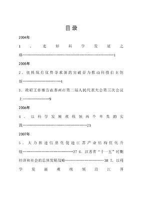 目 录2004年1.走好科学发展之路………………………………………………………………12005年2.依托现有优势寻求新的突破奋力推动科技自主创新…………………………43.政府工作报告在泰州市第二届人民代表大会第三次会议上…………………92006年4.以科学发展观统领两个率先的实践……………………………………………232007年5.大力推进信息化促进江苏产业结构优化升级…………………………………27 6.江苏省十一五时期经济和社会的总体发展战略…………………………38 7.以科学发展观统领沿江开发……………………………………………………42 8.转变经济发展方式实现又好又快发展…………………………………………462008年9.加快产业结构优化升级促进经济发展方式转变………………………………502009年10.在全省信息系统工作会议上的讲话…………………………………………54 11.积极应对金融危机保持经济稳定健康发展…………………………………582010年12.突出四项重点工作促进经济转型升级………………………………………62 13.在新的起点上推进又好又快发展……………………………………………662011年14.以服务经济为主体构建现代产业体系………………………………………71文可居文库——海量学习资料,手机电脑均可下载www.wenkeju.com15.在委行政权力网上公开透明运行信息系统暨电子监察系统建设推进会上的讲话…………………………………………………………………………732012年16.在全省信息系统工作会议上的讲话…………………………………………762013年17.积极稳妥推进城镇化…………………………………………………………802014年18.大力推进产学研合作促进工业转型升级……………………………………83 19.推动我国新能源汽车及车联网创新发展……………………………………86 20.充分发挥社会组织作用推动产学研合作迈向新阶段………………………89文可居文库——海量学习资料,手机电脑均可下载www.wenkeju.com2015年21.把应急产业培育成新的经济增长点…………………………………………92 22.在全省医改工作电视电话会议上的讲话……………………………………95 23.在2015年全国企业管理创新大会上的讲话…………………………………103 24.实施创新驱动抢抓发展机遇…………………………………………………106 25.加快迈向制造强国……………………………………………………………10826.大力发展智能制造突破我国制造业由大变强的瓶颈………………………113 27.筑牢防线严律己履职尽责谋作为……………………………………………119 28.咬定目标突出重点开拓科学发展绿色崛起新境界…………………………1212016年29.在工业品牌培育工作座谈会上的讲话………………………………………123 30.大力发展智能制造突破我国制造业由大变强的瓶颈………………………132文可居文库——海量学习资料,手机电脑均可下载www.wenkeju.com31.提高认识提升水平锤炼队伍全面推动机关事务工作迈上新台阶…………1382017年32.新常怂下中小企业信息化大打可为在2015中小企业信息化服务信息发布会上的致辞…………………………………………………………………1422018年33.在全国中小企业创新转型经验交流会暨电视电话会议上的讲话…………14534. 坚持依法依规普查摸清全省经济家底…………………………………1492019年35.调查研究是提高执政能力的好方法…………………………………………1542020年文可居文库——海量学习资料,手机电脑均可下载www.wenkeju.com36.坚持两手抓夺取双胜利向党和人民交出国家电网出色答卷……………156 37.五四寄语国家电网有限公司广大团员青年:强化战略引领书写时代章…160 38.持续推动全面从严治党向纵深发展…………………………………………162 39.深入学习贯彻民法典争当法治央企排头兵…………………………………165 40.让共产党员服务队旗帜高高飘扬探索国有企业加强基层党建的有效途径…………………………………………………………………………16841.在2020中国500强企业高峰论坛发表的演讲………………………………1712021年42. 确保实施 三高四新 战略见到新气象………………………………………174 43.政府工作报告…………………………………………………………………18244.写在《长江保护法》实施日:文可居文库——海量学习资料,手机电脑均可下载www.wenk