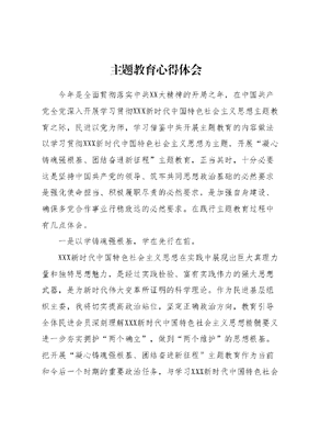 主题教育心得体会今年是全面贯彻落实中共XX大精神的开局之年,在中国共产党全党深入开展学习贯彻XXX新时代中国特色社会主义思想主题教育之际,民进以党为师,学习借鉴中共开展主题教育的内容做法以学习贯彻XXX新时代中国特色社会主义思想为主题,开展凝心铸魂强根基、团结奋进新征程主题教育,正当其时,十分必要这是坚持中国共产党的领导、筑牢共同思想政治基础的必然要求是强化使命担当、积极履职尽责的必然要求,是加强自身建设、确保多党合作事业行稳致远的必然要求。在践行主题教育过程中有几点体会。一是以学铸魂强根基,学在先行在前。XXX新时代中国特色社会主义思想在实践中展现出巨大真理力量和独特思想魅力,是经过实践检验、富有实践伟力的强大思想武器,是为新时代伟大变革所证明的科学理论。作为民进基层组织主委,我将切实提高政治站位,坚定正确政治方向,教育引导全体民进会员深刻理解XXX新时代中国特色社会主义思想精髓要义进一步夯实拥护两个确立,做到两个维护的思想根基。把开展凝心铸魂强根基、团结奋进新征程主题教育作为当前和今后一个时期的重要政治任务,与学习XXX新时代中国特色社会主义思想结合起来,与学习XXXXXX重要讲话精神结合起来,与大兴调查研究结合起来,与民进2023年作风建设主题年工作结合起来,与服务惠农区高质量发展结合起来,与谋划开展好当前各项工作结合起来,推动主题教育走深走实,努力在思想引领上求实效、在协商建言上出成果、在服务大局上有作为,把主题教育激发的正能量转化为履职尽责的自觉行动和实际成果。二是深入调研建新功,强履职献良策。调查研究是获得真知灼见的活水源头。民进惠农区总支将不断增强奋进新征程的责任感和紧迫感,始终做到坚守合作初心,服务中心大局,心系民生履职,立足岗位、深入群众,牢记XXXXXX提出的调查研究深、实、细、准、效五字诀,聚焦发展所需、改革所急、基层所盼、民心所向的问题,既聚焦中共惠农区委工作部署,围绕转型发展、生态建设、六权改革、六大提升行动等重点任务建言履职、担当作为;也把群众普遍关心的热点难点问题作为工作重点,以社情民意信息方式及时反馈,把民生实事落在群众心坎上,在参政履职和凝心聚力中发挥民进独特作用。三是以党为师跟党走,强自身促发展。惠农总支作为基层支部,是战斗堡垒,把方向是关键,我们要紧紧以党为师,进一步强化自身建设,按照四新三好要求,把主题教育学习落实到切实转变工作作风之中,持续深化打造民进同心社区服务站平台,发挥联系群众和会员的作用积极参加小微社会服务、主动参政议政的具体行动中,为解决群众关心、社会关注的热点焦点难点问题贡献民进智慧和力量在新时代新征程中展示新面貌、彰显新作为。
