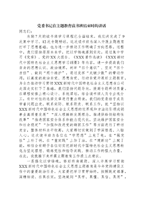 党委书记在主题教育读书班结束时的讲话同志们:为期7天的读书班学习课程已全面结束,我们共完成了9次集中学习、12次专题研讨。这次读书班为深入开展主题教育打牢了思想基础,也为进一步推动工作明确了方向思路。过程中,我们坚持原原本本学,把以学铸魂落到实处。通过集中学习《党章》、党的XX大报告、《XXX著作选读》《XXX新时代中国特色社会主义思想学习纲要》等内容,进一步提高我们自身的思想认识、政治境界,树牢四个意识、坚定四个自信、做到两个维护,通过发挥关键少数的带动作用,以高度的政治自觉、思想自觉、行动自觉开展好主题教育,为全力推动学习贯彻XXX新时代中国特色社会主义思想在公司走深走实打下了基础。我们坚持问题导向,提高专题研讨质量。在课程安排上精心设计、系统谋划,结合读书班人员专业线分工,有针对性的选择文章进行重点研读,我们的党委班子成员带着问题出发,联系实际、联系职责、联系工作,就坚持以XXX新时代中国特色社会主义思想的世界观和方法论引领成销事业高质量发展深入理解新发展理念,推进供给侧结构性改革推进国家安全体系和能力现代化,坚决维护国家安全和社会稳定加强和改进党的群团工作等方面进行了研讨发言,整体材料水平较高,大家都切实做到了学深悟透、入脑入心。这次读书班为各位在学思想上充了电,在强党性上补了钙,在重实践上加了油,在建新功上赋了能,相信会有助于各位切实把新时代中国特色社会主义思想转化为坚定理想、锻炼党性和指导实践、推动工作的强大力量。在此,我就接下来开展主题教育工作提三点建议。一是强化以学铸魂,修好终身课题。深入开展学习贯彻XXX新时代中国特色社会主义思想主题教育是今年党的建设工作中的重要政治任务。大家要把学习贯穿始终,按照既定部署,深耕细读、求真求实,坚决做到真学、真懂、真信、真用,按照从事什么重点学什么缺什么重点补什么的原则,统筹安排好个人自学,深化学习内容、丰富学习载体,充分汲取思想原味,全面深刻领会这一思想的科学体系、核心要义、实践要求,坚持不懈用XXX新时代中国特色社会主义思想凝心铸魂,更加深刻领悟两个确立的决定性意义,不断增进对XXX新时代中国特色社会主义思想的政治认同、思想认同、理论认同、情感认同,不断提高自身理论素养和思想政治水平。在学习这些主要内容的同时,还要努力做到整体把握、融会贯通,也就是把政治、经济、文化、社会等各领域的新理念新思想新战略都放在整个科学体系中来加以理解,要牢固树立系统性思维,避免形成只见树木、不见森林的片面性认识。二是坚持以上率下,保证学习成效。深入开展主题教育,就要发挥好党员干部带学促学作用,把理论学习作为一项基础性、经常性工作来抓,要持续加强分类指导,根据国际国内省内区内以及行业大势,深度结合各自分管领域和专业线工作实际,坚持实事求是、因地制宜、精准施策,既要把规定动作做到位,又要将自选动作干出特色,确保主题教育不变形、不走样、有收获,营造出上下联动、左右互动、整体推动的良好氛围。同时,要层层传导压力,压紧压实责任,坚持一抓到底,将主题教育融入日常、抓在经常,做到思想上不松懈、标准上不降低、力度上不减弱、整改上不将就,推动主题教育善始善终、善作善成,防止和避免虎头蛇尾。此外,要树牢问题导向,深入检视整改,坚持边学习、边对照、边检视、边整改,把发现问题、分析问题和解决问题贯穿主题教育始终,把检视整改作为检验主题教育成效的重要标尺,推动主题教育见到实效。三是突出学以致用,推动高质量发展。XXXXXX强调,要大力弘扬理论联系实际的马克思主义学风。大家要紧密结合工作职责需要,从党的科学理论、XXX新时代中国特色社会主义思想中明方向、学方法、悟规律、增智慧,关键是要把开展主题教育同贯彻落实党中央、上级党组织各项决策部署结合起来、同推动业务中心工作结合起来、同为员工群众谋福祉办实事结合起来,融合民之所需、企之所盼、队伍所期,站在企业发展的长远视角,从如何提升企业核心竞争力、增强企业核心功能,如何把高质量发展纵深推进等方面找方法、找答案;紧扣当下主营欠量缺口较大,先进拉开差距、后进穷追不舍等危机形势,从如何扭转困局、进位进阶,如何做到卓越、追求极致等方面解题破局,切实做到干中学、学中干,创造性地办好公司的事情、做好公司的工作,防止和避免两张皮。同时,要做到常态长效,巩固教育成果,坚持当下改与长久立相结合,坚持联动共促,构筑起推动公司高质量发展的强大体系。气正能聚力,风正好扬帆。同志们,本次主题教育既是新起点,也是新契机,大家要刀刃向内做检视,真刀真枪抓整改,以更加奋发有为姿态,构建公司高质量发展新格局,为中国式现代化注入坚强力量,为集团公司世界一流企业建设注入强大动力!