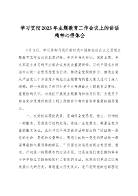学习贯彻2023年主题教育工作会议上的讲话精神心得体会4月3日,学习贯彻习近平新时代中国特色社会主义思想主题教育工作会议在北京召开。中共中央总书记、国家主席、中央军委主席习近平出席会议并发表重要讲话。习近平同志在讲话中从统一全党思想意志行动、推动全党积极作为、推进全面从严治党三个方面对开展此次主题教育的重大意义进行了深入阐释,进一步深化了我们对党中央开展此次主题教育必要性、重要性的认识,对我们开展好主题教育和动员引导广大党员干部自觉自愿地积极投入到主题教育中都有着非常重要的指导意义。一、抓好抓实理论武装,是确保全党思想、意志、行动统一的根本。思想是行动的先导,是统一全党意志、凝聚全党力量的根本保证,正如习近平同志在讲话中指出的团结统一是党的生命,是党的力量所在。思想上的统一是党的团结统一最深厚最持久最可靠的保证。而理论武装是实现全党思想、意志、行动统一的最根本的方法手段,这是在我们党长期的革命斗争中经过实践检验的行之有效的方法。纵观我们党成立以来发展壮大的历史,每逢重大历史关头,无不是用党的创新理论统一全党思想,凝聚全党力量,从而化危为机、化险为夷,取得一个又一个的胜利。自我们党成立以来,党的创新理论都在不断地发展,党的XX大提出了一系列重大思想、重大观点,党的XX大以来在阐述党的XX大精神过程中又提出了一些新观点,特别是提出并系统阐述了中国式现代化这个重大理论和实践问题,进一步丰富了新时代中国特色社会主义思想。这都迫切需要我们不断的去学习,只有学深悟透,才能保证有一个更加坚实的思想基础,才能确保始终在思想上政治上行动上同党中央保持高度一致,做到心往一处想、劲往一处使,保证始终保持正确的工作方向。市场监管工作是以维护市场正常经营秩序、保障消费者权益为核心的任务,只有不断加强对党的创新理论学习理解和把握,才能从政治上把握我们的监管工作,提升市场监管工作的针对性和实效性;只有不断加强思想政治引领,才能更好地激发全体工作人员热情和积极性,更好地履行工作职责;只有持续推进思想政治教育工作,才能提高全体工作人员对市场监管工作的正确认识和理解,进一步凝聚起开展市场监管工作的合力。二、提升能力素质和精神状态,是推动党员干部积极作为的有力抓手。习近平同志在讲话中对当前干部队伍中存在的不愿担当、不敢担当、不善担当问题的主要表现进行了详细的列举,并强调指出这些问题尽管存在于少数党员、干部身上,但任其发展,就会损害党的形象、贻误党的事业,必须认真加以解决。同时,又对如何通过此次主题教育,提振党员、干部锐意进取、担当有为的精气神,推动广大党员、干部以满腔热忱奋进新征程、建功新时代进行了深入的论述、阐释,为我们结合此次主题教育,抓好党员干部能力素质和精神状态提升提升的根本遵循。我们要结合主题教育,优化工作流程,进一步提高工作效率与精度。对应习近平主席在新时代中国特色社会主义思想主题教育工作会议中提出把握新情况、新问题的思考方式,提高工作流程,用更科学化的方法,推进市场监管工作的便捷化、标准化、信息化,提升全系统干部的使命感、责任感,预防和抵制食品安全、电梯安全、质量安全等各种违法行为。结合主题教育,强化市场监管知识培训,提升工作人员职业素养。市场监管工作涉及面广、难度大,需要进行系统化培训。要充分利用内外部专家、专业机构等资源,定期举办专业化培训,为一线监管工作人员提供全方面、高水平的培训服务,培养专业化、专心化、精益化、创新化的市场监管人才。结合主题教育,加强市场监管人员队伍建设。拓展人才来源,加强人才培养,强化工作传帮带,坚持引进一个带动一片、培训一个带动一批,提升市场监管人员专业素质和职业道德修养,为市场监管工作提供有力支持。三、坚持刀刃向内、自我革命,是巩固党执政基础的重要保证。治国必先治党,党兴才能国强。纵观我国几千年的文明史及世界其他国家的政党兴亡史,无论是封建王朝时期的家天下政权,是还是世界上其他发达国家、发展中国家政党,无论是所谓的民主政党,还是年轻的社会主义政党,甚至是一些独裁政权,其丧失执政地位,甚至是亡党亡国,无一不是从其政权、政党内部的腐败、变质开始,由起初的特权、到专权、再到只顾自己不顾人民群众的争利、盘剥,侵蚀政党、政权健康肌体的病毒不断扩散,最终导致走向覆亡。习近平同志在讲话中指出,党的十八大以来,面对党面临的重大风险考验和党内存在的突出问题,我们党以刀刃向内的自我革命精神,采取一系列重大战略举措,坚定不移推进全面从严治党,成就有目共睹,问题也不容忽视。党内存在的思想不纯、组织不纯、作风不纯等突出问题尚未得到根本解决,一些已经解决的问题有可能死灰复燃,贯彻落实党中央决策部署不到位,享乐主义、奢靡之风不时抬头,一些党组织政治功能、组织功能不强等一些新的问题还在不断出现。这就要求我们全党必须毫不放松地抓好自我革命,