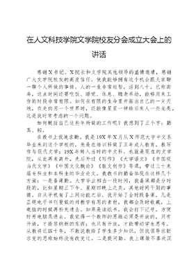 在人文科技学院文学院校友分会成立大会上的讲话感谢X书记、X院长和文学院其他领导的盛情邀请,感谢广大文学院校友的高度信任,使我能够拥有这个机会跟大家聊一聊个人所做的事情。人的一生非常短暂,活到八十,已称高寿,这点时间还要吃饭、睡觉、休息、赡老养幼,能够用来工作的时段非常有限。如何在有限的生命里开拓出自己的一片天地,在走向另一个世界时,还能像星星一样给后来人一些光亮,这是我时常考虑的一个问题。如何概括自己这些年所做的工作呢?我想到了三个字:勤真、韧。在教书上我追求勤。我是19X年X月从X师范大学中文系毕业来到这个学校的,先是在培训科做了五年成人教育,教写作与现代文学;19X年转入当时的中文科,也就是现在的文学院,从此再未离开,先后开过《写作》《大学语文》《中国现当代文学》《中国文化概论》《散文创作》等课,带过三十来届专科生和本科生的毕业论文。我教书的勤奋体现在这样几个方面:一是备课勤。大学毕业相当一段时间,我备课都是分时段的,比如星期三下午、星期四晚上之类,其他时间干别的事情。自从手机有了上网功能之后,我开始了全时段备课,凡是正规电子书刊登载的对教学有用的素材,我都会及时收藏,上电脑的时候再补充进去。如果是读纸书,我会打下记号,方便时开电脑录进去。我觉得一个教师的思维必须是开放的,只有开放,才能容纳新的东西;也只有开放,才能带动学生思考。从教将近四十年,不敢说教给了学生多少知识,但我倡导求新求变的思维始终没有改变过。二是提问勤。我上课最不喜欢沉闷的课堂,因此也不愿意一个人唱独角戏。每一堂课都会设计些问题,就算暂时没有问题,我也会想法让学生动一动,比如与老师共读某篇熟悉的诗文。我也不怕学生挑战自己。我的普通话不好,经常在班上问学生某个字怎么读;我长期打电脑易忘字,也会让学生告诉我某个字如何发笔。上课我鼓励学生提出跟老师不同的意见。考试里的主观题,我规定学生不按书上和老师的授课思路走,而能自圆其说的,给予加分奖励。备课勤、提问勤,最后还得读书勤,只有读书勤,脑子里才有学问、见识,上课时内心才有底气。我规定自己每天的阅读不小于两个小时,一年不低于X小时。这点阅读时间当然也不多,但联系到我的工作和业余爱好所花的时间,也算尽了力。勤读书给教学带来的好处实在太多了。以前我教徐志摩的《再别康桥》,会浓墨重彩地考察徐志摩对西方文明和英国留学生活的迷恋,后来通过阅读,我知道了X就是第一次去英国的时候认识了X,从而热烈相恋,而再去时,X已成了别人的妻子,在分析中引入了他那种江山依旧,人事已非的心结,这样,对文学作品的理解更感性、更有温度,也更接近事物的真相。再比如我教《青春之歌》,以前分析X、X,只是讲到他们的性格特征、在文学史上的地位,后来读了X的散文、X的《X》,才知道X的身上有着作者自己的影子,X则是以X做蓝本的,X则与X有关。在教案里,我专门补充了三个内容,那就是X与X的关系、X与X的异同、X与X的感情对X这个人物塑造的影响。在大学时候,我就感觉到朦胧诗与19X年以来的诗歌传统非常不一样,说有点割裂也不为过,当时觉得奇怪:粉碎四人帮短短几年,诗歌怎么就出现这样的改变呢?后来读到一本叫做《交锋》的书,终于明白:朦胧诗在19X年左右其实就在地下运行,朦胧诗人有两个圈子,一个是X那些出身于高级干部、高级知识分子家庭的中学生,他们的父母可以买到供批判用的西方现代派文学和苏联解冻文学时期的禁书,一个是这些中学生下放到X之后尝试着用新的艺术手法写作,这样文可居文库——海量学习资料,手机电脑均可下载www.wenkeju.com就催生了朦胧诗。由此我导出一个结论:朦胧诗在公开诞生之前也有一个十年左右的艺术准备期。在育人上,我追求真。首先是做人真实。我在课堂上制订一个规矩:要求学生至少提前X分钟进教室,不准踩点。之所以定这样的规矩,是因为我发现一有学生踩点进教室,老师的注意力就会分散,上课就会缺少良好的感觉,这无形中会极大地影响教学质量。为了让学生遵守纪律,我每次都会提前X多分钟进课堂,往往做好所有教学准备之后时间还有余剩。我这样做,是想告诉学生:人与人是平等的,老师在考勤上严格要求学生,只是为了维护正常的教学秩序,不是要显示什么威风。第二是愿意对学生付出真情。我带学生在新化工职中学实习的时候,发生了该校学生互殴导致家属参与伤及实习生胡某的严重事件。我的学生是农村来的,非常老实,不敢向对方讨公道。我当即向施害者提出要求:相关当事人必须向我的学生公开赔礼道歉,并给予一定的经济赔偿。对方自恃在当地有背景,反复强调家属出面打人是自己的孩子受了欺侮,不愿道歉,更不愿出钱。我严肃地批评了他们,并阐明自己的观点:不管该学校参与互殴的学生谁对谁错,我的实习生维护教学秩序无错,不但无错,其敬业精神还值得表扬,假若闹事家属不给个说法,我将通过学校协调娄底地