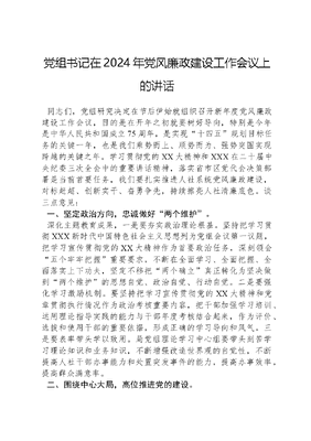 党组书记在2024年党风廉政建设工作会议上的讲话同志们,党组研究决定在节后伊始就组织召开新年度党风廉政建设工作会议,目的是在开年之初就要树好导向,特别是今年是中华人民共和国成立75周年,是实现十四五规划目标任务的关键一年,也是我们乘势而上、顺势而为、强势突围实现跨越的关键之年。学习贯彻党的XX大精神和XXX在二十届中央纪委三次全会中的重要讲话精神,落实省市区党代会决策部署是当前首要任务,我们要扎实推进人社系统党风廉政建设,对标赶超、创新实干、奋勇争先,持续擦亮人社清廉底色。谈三点意见:一、坚定政治方向,忠诚做好两个维护。深化主题教育成果,一是要夯实政治理论根基。坚持把学习贯彻XXX新时代中国特色社会主义思想列为党组会议第一议题,把学习宣传贯彻党的XX大精神作为首要政治任务,深刻领会五个牢牢把握重要要求,不断在全面学习、全面把握、全面落实上下功夫,坚定不移把两个确立真正转化为坚决做到两个维护的思想自觉、政治自觉、行动自觉。二是要强化学习激励机制。要坚持把学习宣传贯彻党的XX大精神和党章贯彻执行情况作为政治考核重要内容,把干部加强学习培训、运用理论指导实践的能力与干部年度考核结合起来,作为评价、选拔和使用干部的重要依据,形成正确的学习导向和风气。三是要表率带头学以致用。局党组理论学习中心组要带头刻苦学习理论知识和业务知识,不断增强改造世界观的自觉性,不断提高人社干部办事能力和处置突发事件的能力,提高办事效率,提高群众满意率。二、围绕中心大局,高位推进党的建设。做到党建工作与业务工作同安排、同部署、同考核,促进党组织凝聚力和战斗力。一是在党性教育上,要做到常态长效。严格党员教育管理,以开展重强抓和温暖人社专项活动为契机,引导党员干部作表率、善担当、当先锋;严格落实党的组织生活制度,坚持三会一课、民主生活会、谈心谈话等制度机制;深入开展三级书记讲党课,三个课堂学习活动,深化学习清单、督导检查等制度;结合人社机关党建实际,抓实调研工作,有针对性地开展党建课题申报和研究,切实推动学用结合。二是在意识形态上,要做到抓严抓实。健全完善全局意识形态工作管控机制,压实管控责任,坚决抵制、批驳各种错误思潮和错误观点,增强法治意识和保密意识。把握正确政治方向、价值取向、舆论导向,不断扩大意识形态工作的覆盖面和影响力,确保在政治上、思想上、言行上与党中央保持高度一致。三是在决策落实上,要做到不偏不倚。认真学习贯彻中央、省委、市委、区委全会和经济工作会议精神,聚焦全区1336发展战略,充分发挥党建引领保障作用,围绕重大战略、重要任务、重点举措,教育党员干部认清形势、把握大局,攻坚克难、苦干实干,不折不扣地推动各级重大决策部署落地落实。三、聚焦主业主责,夯实党风廉政建设。今年,区人社工作将认真落实省市区委全会和省市人力资源和社会保障工作会议部署要求,坚持稳中求进工作总基调,锚定加快建设中部现代化建设示范区总目标,秉承忠诚、高效、极致工作理念,突出就业工作高质、社会保障安全、收入分配合理、人才人事赋能、劳动关系和谐、公共服务暖心的工作导向,争做经济发展推动者、民生福祉守护者、改革创新先行者、人才高地建设者、安全稳定维护者、营商环境促进者,以奋发有为的精神状态,全力推进区人力资源和社会保障事业高质量发展。一是要落实主体责任。坚定不移推进全面从严治党向纵深发展,全面落实党组主体责任、党组书记第一责任人责任、班子成员一岗双责,建立党风廉政建设责任清单和任务清单,锁紧责任链条,推动责任落实到位。二是要加强监督教育。按照省人社厅、市人社局组织开展的以案促改工作部署要求,进一步强化对就业培训资金、社保基金的专项整治,加强重点领域和关键岗位监督。开展清廉机关建设,健全正面引、反面警、日常醒、重点盯的四位一体廉政教育监督机制,营造浓厚的廉政氛围。三是强化作风建设。坚决落实中央八项规定精神和省市区十项规定及其实施细则,驰而不息深入整治机关作风突出问题,有效解决门好进、脸好看、事难办等顽瘴痼疾。树立正确政绩观,持续开展我为群众办实事实践活动,切实解决企业困难事、群众的烦心事,不断增强企业、群众获得感、幸福感、安全感。同志们,我们要深入学习贯彻XXXXXX关于党的自我革命的重要思想,切实增强以自我革命精神深入推进全面从严治党的政治自觉,始终保持清醒和坚定,拼搏奋进,积极作为,为助力全区高质量发展提供坚实人社力量。