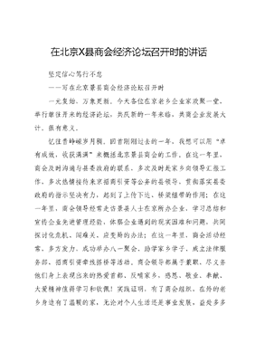在北京X县商会经济论坛召开时的讲话坚定信心笃行不怠——写在北京景县商会经济论坛召开时一元复始,万象更新。今天各位在京老乡企业家欢聚一堂,举行继往开来的经济论坛,共庆新的一年来临,共商企业发展大计。很有意义。忆往昔峥嵘岁月稠。回首刚刚过去的一年,我想可以用卓有成效,收获满满来概括北京景县商会的工作。在这一年里,商会及时沟通与县委政府的联系,多次及时赴家乡向领导汇报工作,多次热情接待来京招商引资等公务的县领导,贯彻落实县委政府的指示坚决有力,起到了上传下达、桥梁纽带的作用;在这一年里,商会领导经常走访景县人士在京所办企业,学习总结和宣传企业先进管理经验,体察企业遇到的现实困难和问题,共同探讨化危机、闯难关、应变局的办法;在这一年里,商会活动经常,多方发力,成功举办八一聚会、助学家乡学子、成立法律服务部、招商引资牵线搭桥等活动。商会领导都属于兼职、尽义务他们身上表现出来的热爱首都、反哺家乡,感恩、敬业、奉献、大爱精神值得学习和钦佩!实践证明,有了商会组织,在外的老乡身边有了温暖的家,无论对个人生活还是事业发展,益处多多事非经过不知难。在过去的一年里,各位在京的景县企业家发扬儒商的诚信、坚韧、包容、奋斗、朴实、博爱精神,努力挽回疫情三年给企业发展带来的困难和损失,艰苦创业,埋头苦干攻坚克难,玉汝于成。许多企业在艰难中奋起,在探索中前进,业务有新拓展,质量有新提高,效益有新增强。尤其是大家发扬了抱团取暖的精神,互相关心,互相爱护,互相帮助。有不少企业家在自身并不顺利的情况下,还伸出援手支持商会工作,帮助贫困学子,积极参加各种公益活动。彰显出现代企业家博大的胸怀和可贵的爱心。这种精神同样值得我们学习和钦佩。新的一年的帷幕已经拉开,如果让我赠送给在座的企业家老乡们一句话,那就是:坚定信心,团结一心,踔厉奋发,笃行不怠。有句话说得好:信心比黄金还重要。俞敏洪说过这样的话,人的一生见识比知识重要,智慧比聪明重要,胸怀比财富重要,思考比执行重要。不要因为友情背叛对朋友失去信心,不要因为事业挫败对未来失去信心,不要因为错误决策对自身失去信心,不要因为环境恶劣对发展失去信心,不要因为人性难料对善良失去信心,不要因为人生无常对美好生活失去信心。当你保有信心以后,一切光明都是应有之义!企业家是国家发展的原动力。这是著名战略咨询专家王志纲说的一句话。是的,做一个新时代的企业家是无上光荣的,也是任重道远的。那么,怎样才能成为一个合格的、优秀的、出色的企业家呢?我认为起码应具备这样几个素质:一是要有不断学习的能力。学习政治,学习经济,学习本专业前沿知识,学习有利于丰富和完善自己的一切知识。现在我国各个尖端企业的领军人物,都是具有高学历的人,都是善于学习的人,都是有较强的科技意识、社会洞察力和战略思维能力的人二是要有恪守诚信的品格。有强烈的质量意识,学习章丘铁锅精神。耐得住寂寞,经得起诱惑,不搞弄虚作假,不走投机取巧的捷径,舍得下苦工夫、细功夫、笨功夫,靠老实踏实朴实和与时俱进开拓创新赢得客户。三是要有胜不骄败不馁的气度。尤其要有走出低谷的勇气和能力。人生不如意事十有八九,生意场就是战场,胜败乃兵家之常事。能在低谷、逆境中奋起,不向困难低头,不被挫折压倒的人才能到达光辉的彼岸。四是要有建立广泛人际关系的能力。古语讲天时地利人和,办企业同做任何事情一样,都需要有好的人缘,孤家寡人难成事。在企业内部,建立团结和谐的人际关系;对外交往,善于借助外力壮大自己实力。五是要有家国情怀和感恩利他之心。一个企业家应有民族气节、爱国精神,拥护党的领导,紧跟党的路线方针政策走。把企业的前途命运与国家的前途命运紧密联系在一起。感恩社会,同情弱者,扶危济困,多献爱心,多做贡献。新年新气象。前行路上,有风有雨是常态,风雨无阻是心态风雨兼程是状态,祝大家新的一年朝着梦想继续进发。只要我们坚定信心,团结一心,踔厉奋发,笃行不怠,就没有任何力量可以阻挡我们实现更加美好生活的前进步伐。祝北京景县商会越办越好!祝各位领导和企业家及老乡们福暖四季,顺遂安康!(作者:马达,我的卧虎湾)