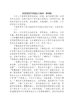 市委党校学员论坛主持词、讲话稿今天上午按照市委党校的统一安排,我们班要开展一次学员论坛活动,由我们班5个党小组分别选出一名学员代表,围绕我市经济社会发展、党性教育、实践调研、个人思想、工作实际进行交流发言。下面有将5个党小组的学员代表依次进行发言,大家欢迎。……刚才,5位学员代表的发言,学用结合,主题突出,内容丰富,既有理论高度又有实践深度。本次学员论坛活动,为进一步学懂弄通做实XXX新时代中国特色社会主义思想,为如何运用新思想武装头脑,为全面建设社会主义现代化新X和中原更加出彩贡献X力量,提高了认识、坚定了信心。下面我结合学习体会我简单讲几点:理论学习是思想淬炼的过程,干事创业是一切工作的核心以学促干能力几分是检验主题教育成效几何的关键。党员干部当坚持学思用贯通、知信行统一,打好学的基础,抓实研的方法,坚持干的导向,过好理论关调研关实践关,不断推动主题教育走深走实、见行见效。一是要以学为基,过理论关,厚积而后薄发。工欲善其事,必先利其器。党的科学理论就是党员干部的秘密武器。只有理想信念坚定了、理论知识丰富了,才能在面对妖魔鬼怪时意志坚定、处理烫手山芋时游刃有余、迎接惊涛骇浪时镇定自若。党员干部在学习XXX新时代中国特色社会主义思想过程中,要坚持认认真真学真理、获真知。正所谓不登高山,不知天之高也;不临深溪,不知地之厚也。理论学习若是蜻蜓点水、浮光掠影,就容易不知天高地厚、不辨大是大非,就可能意志不坚、根基不稳,导致茫茫然做事、飘飘然做人,进而贻误党和国家事业发展。党员干部应有士别三日,当刮目相看。的能力提升自觉,深挖XXX新时代中国特色社会主义思想精神富矿,深刻领会新思想关于政治、经济、文化、社会、生态文明建设等领域的科学论述,准确把握其科学性、实践性、时代性,切实自我武装、自我检视、自我剖析,不断增强政治定力和政治能力,进而做到深学深悟、真懂真信、活学活用。二是要以研为引,过调研关,善谋而后善成。坐在办公室碰到的都是问题,下去调研看到的全是办法,高手在民间。李强总理的经验之谈道出了解决问题最好的办法,那就是拜人民群众为师,深入调查研究。以学促干,当坚持人民至上和问题导向的基本要求,把人民群众摆在首位,将调查研究贯彻始终,切实把问题找准、把原因挖深、把对策提实。一方面要善察民情、问需于民。如何问需于民?首先要装得下民生民事,听得懂乡音土语。要主动融入到广大群众中去,和他们话家长里短、谈柴米油盐,在乡音中察民情,于土语中知民意,将民情民意及时收集、研究、处理,将人民群众的问题清单转化为党员干部的工作清单;另一方面,要以民为师、问计于民。正所谓,知屋漏者在檐下,知政失者在草野。各项政策的出发点必然是保障人民群众的根本利益,各项政策的落脚点也最终要深入到基层一线。政策好不好、执行好不好、效果好不好,群众最有发言权,群众的声音也最具代表性和针对性,只有时刻保持空杯心态,广积民智、广聚民力,才能让各项政策更加贴合实际、更加惠及民生,也才能切实增强人民群众获得感、幸福感、安全感。三是要以干为要,过实践关,履践而后致远。为学之实,固在践履。实践永远是出真知的最佳途径。脱离实践的理论学习是片面而局限的,脱离实践的行动口号是苍白而无力的,光学不用、光说不做便会落入形式主义的窠臼。在坚持以学促干、全面推动主题教育走深走实过程中,要树立实践意识、实干意识,避免口号震天响、落实一阵风的敷衍了事。要坚持学用结合,用好XXX新时代中国特色社会主义思想谋划推进各项文可居文库——海量学习资料,手机电脑均可下载www.wenkeju.com工作,传承好理论联系实际、密切联系群众、批评与自我批评等党的优良传统,坚持抓问题见真章、抓整改补短板,在火热实践中出检验真理、在自我批判中坚定信念、在务实作为中创造业绩,扎扎实实把学习成果转化为干事创业的实际成效。新的征程上,达成宏伟目标、实现美好蓝图注定不是一帆风顺的,要克服前进道路上的风高浪急甚至惊涛骇浪,就要锚定目标任务,杜绝躺平思想官僚主义等歪风邪气,时刻保持斗争意识、磨砺斗争本领,既怀青云之志、也察秋毫之末、能尽细小之微,用忠诚扛起使命、用实干彰显担当、用拼搏书写时代答卷!文可居文库——海量学习资料,手机电脑均可下载www.wenkeju.com