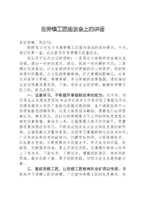 在劳模工匠座谈会上的讲话各位劳模、同志们:按照X公司关于开展劳模工匠宣传活动的通知要求,今天,我们欢聚一堂,在这里召开X劳模工匠座谈会。我们召开此次会议的目的:一是通过大家畅所欲言地交流沟通,提出一些好的意见、建议,找到一些问题和不足;二是通过交流座谈,让大家感到单位对劳模的关心和爱护,找到荣誉感和归属感,大力弘扬劳模精神,扩大劳模的影响力,在单位形成学习劳模、尊崇劳模、争当劳模的浓厚氛围,进而推动企业实现高质量发展。下面,我结合当前形势,就做好劳模工匠工作,提几点要求。一、注重学习,不断提升掌握新技术的能力。近年来,咱们X企业发展速度很快.如去年在综采工作面实现了智能化开采、在煤巷掘进头实现了智能化综掘远程控制、生产调度指挥中心实现智能化控制等等,这是大家有目共睹的,需要我们必须提高认识,转变观念,把以往的劳模靠力气工作的传统思想观念转变到靠智慧、靠技术上来。这就需要大家不仅仅能干,更重要还要加强技术学习,不断适应现有企业企业科技发展的新形势,全面提高自身整体素质,及时学习掌握新的专业技术知识,广泛参加各种技术技能培训,以勤学长知识、以苦练精技术、以创新求突破,不断提高技术技能水平,努力成为知识型、技能型、创新型劳动者。要立足岗位实际,在掌握关键核心技术上下真功夫、下苦功夫、下硬功夫,增强创新意识、培养创新思维,激发创新才智、勇于创新实践,切实为企业发展贡献力量。二、重视劳模工匠,让劳模工匠精神在全矿得以传扬。要掀起学习劳模工匠的热潮。广泛宣传劳模工匠的先进事迹、优秀品质和高尚精神,大力弘扬模范工匠奋发向上、勇于拼搏、无私奉献的精神品质,使他们崇高的精神发扬光大,进而激发广大职工立足岗位忠诚奉献的积极性;要在政治上关心劳模,重视他们的呼声建议,引导和激励他们不断追求进步;要在工作上关心劳模,主动为他们创造良好的工作环境,促进他们更好地发挥作用;要在生活上关心劳模,落实好他们应有的各种待遇,解决好他们的后顾之忧。总之,要把关心劳模、爱护劳模作为一项政治责任,合力保护好、调动好、发挥好劳模投身发展的积极性和创造性,为劳模先进人物的不断涌现和健康成长创造良好的社会环境。三、发扬公而忘私的奉献精神,做推动企业发展的模范。要把树立远大的理想同脚踏实地做好本职工作结合起来,以饱满的热情、高昂的斗志投身于企业发展各项工作中。进一步树立安全观念、效益观念,坚持以提高经济效益和劳动效率为中心,充分发挥自己的聪明才智,广泛参与劳动竞赛、技术革新、技术攻关等活动,为企业安全发展贡献力量。一要带头坚守安全红线,遵守规章制度,杜绝三违现象发生;二要做好传帮带工作,要把自身学到专业技能或者劳模精神无私奉献传授给青年职工,帮助青年职工提高技能,快速成长成才,着力培养后备高技能人才,做好人才蓄水池;三要带头处好同事与同事之间的关系。要把人与人之间相互理解、相互体谅、相互感恩作为立身之本和立德之基,对别人的工作积极支持,对别人的帮助心存感激,使同事之间团结协作蔚然成风。四要带头做好降本增效工作,要以党建+生产经营为抓手,定期对各单位材料消耗情况进行督导检查,加强材料管控。四、加强舆论宣传,进一步树立尊重劳动的良好风尚。工会、党委工作部要进一步重视和加强劳模工作,充分发挥先进模范的骨干、带头和示范作用,利用矿微信公众号、广播、游走字幕等宣传媒体,宣传劳模工匠的先进事迹,激励和引导广大干部职工学习劳模工匠精神,加大宣传力度,迅速在公司系文可居文库——海量学习资料,手机电脑均可下载www.wenkeju.com统掀起崇尚劳动、学习劳模、争当劳模、关爱劳模的浓厚氛围,激发广大职工的工作热情和劳动积极性,从而把企业发展转化为干部职工的自觉行动。同志们,劳模先进有着广泛而特殊的影响力、凝聚力和示范带头作用,希望广大劳动模范工匠要增强使命感、责任感,珍惜荣誉、谦虚谨慎、再接再厉,为企业发展再立新功。我的讲话完毕,谢谢大家!文可居文库——海量学习资料,手机电脑均可下载www.wenkeju.com