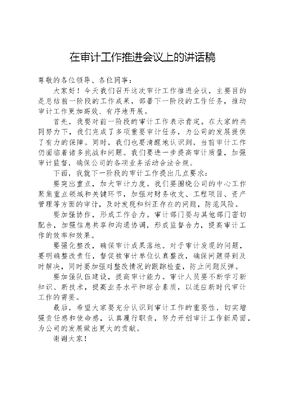 在审计工作推进会议上的讲话稿尊敬的各位领导、各位同事:大家好!今天我们召开这次审计工作推进会议,主要目的是总结前一阶段的工作成果,部署下一阶段的工作任务,推动审计工作更加高效、有序地开展。首先,我要对前一阶段的审计工作表示肯定。在大家的共同努力下,我们完成了多项重要审计任务,为公司的发展提供了有力的保障。同时,我们也要清醒地认识到,当前审计工作仍面临着诸多挑战和问题。我们要进一步提高审计质量,加强审计监督,确保公司的各项业务活动合法合规。下面,我就下一阶段的审计工作提出几点要求:要突出重点,加大审计力度。我们要围绕公司的中心工作聚焦重点领域和关键环节,加强对财务收支、工程项目、资产管理等方面的审计,及时发现和纠正存在的问题,防范风险。要加强协作,形成工作合力。审计部门要与其他部门密切配合,加强信息共享和沟通协调,形成监督合力,提高审计工作的效率和效果。要强化整改,确保审计成果落地。对于审计发现的问题,要明确整改责任,督促被审计单位认真整改,确保问题得到及时解决,同时要加强对整改情况的跟踪检查,防止问题反弹。要加强队伍建设,提高审计能力。审计人员要不断学习新知识、新技术,提高业务水平和综合素质,以适应新时代审计工作的需要。最后,希望大家要充分认识到审计工作的重要性,切实增强责任感和使命感,认真履行职责,努力开创审计工作新局面,为公司的发展做出更大的贡献。谢谢大家!
