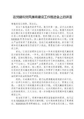 在党建和党风廉政建设工作推进会上的讲话尊敬的各位领导、同志们:在这个春意盎然的季节里,我们齐聚一堂,召开此次相关工作推进会,这是一次至关重要的会议。在此,我谨代表组织向长期以来在党建和廉政建设中辛勤工作的各位领导、同志表示衷心的感谢和高度的敬意。党的XX大以来,我们坚持以XXXXX思想为指导,深入推进党的建设新的伟大工程,全面从严治党取得了显著成效,但我们也清醒地看到,新形势下党建和党风廉政建设仍面临不少挑战,需要我们进一步加强和改进工作。首先,让我们回顾和总结过去一年来在党建和党风廉政建设方面取得的成绩。一年来,我们紧紧围绕XX 和 XX 的决策部署,坚持问题导向,加强党的政治建设,严格执行党的组织生活制度,全面加强党员干部的理论学习和实践锻炼。通过开展不忘初心、牢记使命主题教育活动,广大党员干部的政治意识、大局意识、核心意识、看齐意识显著增强。同时,我们坚持把党风廉政建设和反腐败工作贯穿于党建工作的全过程和各方面,加大了对违规违纪行为的查处力度,有效维护了政治纪律和政治规矩的严肃性。然而,在成绩的背后,我们也要清醒地看到存在的不足。在一些单位和部门,党的建设仍然存在形式主义、官僚主义现象;一些党员干部的服务群众意识不强,对党风廉政建设的认识还不够深刻等等问题依然存在。这些问题的存在,提示我们必须持续用力、久久为功,进一步加强和改进党建和党风廉政建设工作。在当前形势下,党建和廉政建设面临着新的要求。我们正处在XXXXX新征程的关键时期,这对党的建设提出了更高要求。XXXXXX思想明确指出,全面从严治党永远在路上,党的自我革命永无止境。在新的历史条件下,我们要进一步增强四个意识,坚定四个自信,做到两个维护,不断提高党的建设质量和水平。同时,面对复杂多变的国际形势和国内改革发展稳定的重大任务,要求我们必须不断创新思路和方法,加强制度建设,持续推动全面从严治党向纵深发展。针对当前和未来一段时间内党建和党风廉政建设的具体工作,我们必须明确任务,细化措施,确保各项工作落到实处。首先,在加强党建方面,我们要进一步优化党组织活动的质量和效果。一是要加强政治理论学习,确保党的最新理论成果深入人心,特别是XXXXXXX思想的学习贯彻,要做到深学笃行,真正用以武装头脑、指导实践、推动工作。二是要创新党内活动形式和载体,增强党组织的吸引力和凝聚力,通过开展形式多样的主题党日活动、志愿服务活动等,增强党员的身份认同和使命感。三是要加强党员干部的能力建设,特别是年轻干部的培养选拔,通过岗位实践、轮岗交流等方式,锻造一支政治强、本领高、作风硬的干部队伍。在推进党风廉政建设和工作方面,我们要坚持无禁区、全覆盖、零容忍的态度,进一步深化反腐败斗争。一是要加强对权力运行的监督制约,完善权力运行机制。二是要强化廉政风险防控和制度建设,对各种违规违纪行为早发现、早处理、早纠正。加强责任意识和落实责任是推进党建和党风廉政建设的关键。各级党组织和广大党员干部要清醒认识到,党建和廉政建设工作是一项系统工程,需要我们每一个人都扛起责任,做到位。一是要明确责任,要根据工作职责分解落实党建和廉政建设任务,确保每项任务都有人抓、有人管。二是要强化监督,通过建立健全监督机制,增强监督力度,确保党建和廉政建设工作不走样、不变形。三是要严肃追责,对于工作中的失职失责现象,要严格追究相关人员的责任,真正做到有责必问、问责必严。同志们,党建和党风廉政建设工作是一项长期而艰巨的任务,需要我们不断探索和前进。我对未来充满信心,相信只要我们齐心协力,持之以恒,就一定能够推动机关党建和党风廉政建设工作迈上新的台阶。同志们,让我们以XXXXXX思想为指导,以更加坚定的信念、更加饱满的热情、更加扎实的工作,共同推进机关党建和党风廉政建设,确保党和国家事业发展不断取得新的成就!