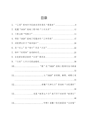 目录1.三同奏响中华民族共同体意识最强音.92.把握3820战略工程中的三对关系.123.工程出新唯熟尔.144.领悟3820战略工程蕴含的三种思维..175.深挖理论学习精神富矿.206.是沃土是青竹更是工匠..227.铸牢共同体奋进新时代.258.自我革命要坚持把自我摆进去.279.力到之中方见政治敏锐.3010数说3820战略工程续写奋斗新篇.3211.从3820看领题、解题、破题之道.3512..读懂天津之行背后的为民情怀.3813.发展新质生产力离不开干部素质新质化.4014.咔嚓!拍摄一张民族团结全家福.4315探寻一张蓝图绘到底的一字密码.4516..以将登太行之姿翻越重重雪山.4817以新质生产力发展见新潮澎湃.5118.追寻榜样之光书写青春篇章.5419..青年干部以满格书写为民更字篇章.5720.党员干部算好主题教育的收官账.6021.敢字当头阔步高质量发展新征程.6322载好一号文件驶向乡村振兴.6523.抓落实推动改革实现新突破.6724.打好乡村振兴漂亮仗.7025