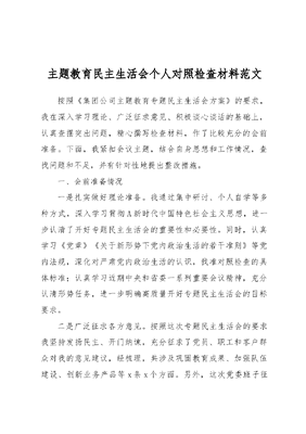 主题教育民主生活会个人对照检查材料范文按照《集团公司主题教育专题民主生活会方案》的要求,我在深入学习理论、广泛征求意见、积极谈心谈话的基础上,认真查摆突出问题,精心撰写检查材料,作了比较充分的会前准备。下面,我紧扣会议主题,结合自身思想和工作情况,查找问题和不足,并有针对性地提出整改措施。一、会前准备情况一是扎实做好理论准备。我通过集中研讨、个人自学等多种方式,深入学习贯彻A新时代中国特色社会主义思想,进一步认清了开好专题民主生活会的重要性和必要性。同时,认真学习《党章》《关于新形势下党内政治生活的若干准则》等党内法规,深化对严肃党内政治生活的认识,找准对照检查的具体标准;认真学习近期中央和省委一系列重要会议精神,充分认清形势任务,进一步明确高质量开好专题民主生活会的目标要求。二是广泛征求各方意见。按照这次专题民主生活会的要求我坚持发扬民主、开门纳谏,充分征求了党员、职工和客户群众对我的意见建议,经梳理,共涉及巩固教育成果、加强队伍建设、创新业务产品等x条x个方面。另外,这次党委班子征集到x条x个方面的意见建议。这些我都在这次对照检查过程中进行了深入分析,融入到问题查摆、原因剖析中。三是积极开展谈心谈话。接到开展专题民主生活会的通知后,我抓紧围绕会议主题,按照有关要求,聚焦当前形势任务,与班子成员、分管部门和包片机构负责同志逐一进行了谈心谈话,充分征求了他们对我个人日常履职、工作作风等方面的意见,以及下一步的改进建议,我都认真听取,虚心接受,为自己深入查摆问题提供了很大帮助。二、对照检查发现的问题一是贯彻新发展理念有欠缺。集团公司要走上高质量发展的道路,必须以案为鉴、以案促改,汲取以往教训,坚决避免重蹈覆辙,但在这方面抓的不紧、进展不大。尽管思想上高度重视,也多次安排有关部门抓紧落实,但对照党委要求,尽管一直在深入思考,也已经安排具体负责部门,但迄今为止尚未拿出实实在在的结论性成果,这方面依然做的不够。二是在服务基层发展上有差距。主要体现在对基层工作面临的痛点难点掌握的还不够迅速、不够主动,与基层高质量发展的紧迫需求相比,还有很大差距。另外,对基层员工关心关爱也不够多,虽然每次下线调研都与一线人员直接沟通交流,平时决策也从保持员工战斗力、提升员工获得感的角度出发,但由于一些企业经营困难、增收乏力,在保障员工待遇方面确实存在客观困难,一定程度上影响了队伍士气。三是在精准研判形势上有不足。在取得一点成绩的时候,对严峻复杂形势的估计有些盲目乐观,片面认为总体局面已经稳住,不自觉放松了自我要求,放慢了工作节奏,实际上面临的问题积弊已久,很多风险隐患根深蒂固,还难在短时间内连根拔起,尤其是长期形成的不良作风和习惯已经渗透和影响到经营管理的方方面面,危害不容小觑。四是在狠抓贯彻落实上有短板。履职过程中发现,上热下冷的现象非常突出,集团公司出台的一些政策,根本到不了战斗一线,直接影响了工作落实。到基层调研随机提问时,有的基层同志要么一知半解、说不准确,要么答非所问、不知所云。面对这种情况,自己也想了一些办法,但短时间内尚未看到明显效果。认真反思,与自己重安排、轻督导也有很大关系,没有在狠抓落实上快速形成一套系统完整的过硬办法。三、产生问题的原因分析一是理论武装不够。突出表现在对A新时代中国特色社会主义思想学的不深、悟的不透。多数情况下都是在按部就班的参加统一组织的干部培训,或是集团公司党委中心组的集体学习,其余时间和精力基本都扑在工作上,一直是高强度作战,没有坚持经常学、天天学、反复学。二是政治站位不够。我在这次民主生活会上对照检查出的各类问题,归根结底都是政治站位不够高,政治判断力、政治领悟力、政治执行力不够,政治敏锐性不强,没有时刻站在讲政治的高度,充分认清形势的复杂性、任务的艰巨性,没有始终站在讲大局的高度狠抓学习领会、狠抓贯彻落实,导致自己实际工作出现了一些短板和不足。三是党性修养不够。主要是没有时刻把全心全意为人民服务放在第一位,在服务客户、服务实体和服务基层方面尚未完全做到统筹兼顾,没有精准有效落实到具体工作的各个环节、各个领域。没有把中央决策部署和日常工作很好的融合贯通起来,导致自己在形势判断、攻坚克难、狠抓落实方面出现一些短板和问题。没有充分发挥好一名党员干部的先锋模范作用,在为其他班子成员作示范、树表率方面,还有很大提升空间。四、整改措施一是强化理论武装。我将按照读原著、学原文、悟原理的要求,深入学习贯彻A新时代中国特色社会主义思想,进一步用党的理论武装头脑、指导实践、推动工作。我将认真学习领会AXXX关于全面从严治党的重要论述,进一步扛牢扛实管党治党政治责任。我将充分用好学习强国等各类学习平台,按照要求参加省委举办的各类理论培训,不断提升自身政治理论水平,为更好履职打牢理论根基。二是强化政治建设。我将增强忠诚拥护