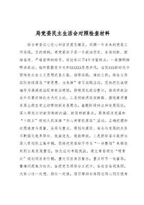 局党委民主生活会对照检查材料综合常委谈心交心和征求意见情况,回顾一年多来的党委工作实践,总的感到,局党委班子是一个政治坚定、务实创新、团结奋进、严格自律的班子。突出有以下4个方面特点:一是旗帜鲜明讲政治。始终紧跟党中央和XXXXXX思想步伐,自觉XXX新时代中国特色社会主义思想武装头脑、指导实践、推动工作,结合工作实际持续深化学思想、当先锋学习实践活动,坚持把忠诚领袖作为最高政治纪律政治规矩,持续深化政治整训,推动讲政治由外在要求转化为内在主动。二是积极进取闯新路。围绕高质量发展主题自觉主动贯彻新发展理念,着眼阶段特点和发展现状,深入研究分析新形势新内涵、新目标新要求,聚焦经济发展和十四五规划大抓深推齐心共管抓落实活动,正确把握和处理速度与质量、全局与重点、筹划与落实、安全与发展的关系不断强化效果导向、效益优先、效能释放。三是团结奋斗敢担当深入贯彻民主集中制,坚持把党委班子作为一块整钢来锻造共同扛起发展重任,协力应对考验挑战,建立常委领办硬骨头规划项目责任制,重大项目亲自督办,重点环节一线督导,重难问题集力攻关,各级党员领导分工把口,各处室各司其职,大家心往一处想、劲往一处使,感召带动全体同志同心同力投身建设发展。四是严格自律守规矩。始终保持两个永远在路上的清醒,重学风严抓理论武装,重制度严谨议事决策,重规矩严格选人用人,带头落实廉洁从政制度规定,在住房、用车、身边工作人员配备使用等方面不搞特殊,重视培育良好家风,为部属作出了表率。对照这次民主生活会明确的要求深入剖析,感到局党委班子建设还存在以下差距不足。一是落实讲政治要求方面。强化政治引领还有差距。从党委班子自身这个重头看,学习党的创新理论全面性系统性深入性有待加强,放眼两个大局、站上国之大者来理解把握还不够到位,政治判断力、政治领悟力、政治执行力还需进一步提升从一线窗口单位这个大头看,把看图解当作读原著、背金句当作学原文、听故事当作悟原理等现象还不同程度存在,推动两个确立转化为两个直达还需进一步抓实。提升政治能力还有差距。从政治和全局高度观察、分析、处理问题的能力有待加强运用XXXXXX系列重要讲话中蕴含的世界观和方法论谋划推动自身建设发展还有欠缺,统领推进各项建设还不能完全做到从政治上看、从政治上抓、从政治上建。筑牢政治防线还有差距。面对大家在社会变革、个人成长中出现的时代印记和思想特征,抢抓思想阵地、开展思想革命、筑牢思想防线的主动性敏锐性不够,发生网赌网贷、翻墙上网和添加不良微信群等问题,反映出掌控思想、管控网络、把控全程还未贯通到底。二是落实善创新要求方面。思维理念转变还有欠缺。适应改革调整新形势、经济发展新常态、全面建设新特点,旧的思维观念、工作模式、发展路径还没有完全转变和摆脱,对影响经济发展的要害问题、制约转型升级的关键问题、困扰单位建设的顽疾问题、群众热切期盼的现实问题,运用新发展理念探寻破解之策还不多,浅层次落实、低水平徘徊、重复性建设还有表现。创新活力激发还不充分。这几年局党委在激发调动广大党员积极性创造性上想了不少办法、出台了不少举措,总的来看,积极性得到有效激发,创造性创新性还有待加强,与当前的工作需要和形势所需不相适应。从深层次看,少数同志进取精神不足,个别同志躺平内卷甚至摆烂,需要在治平、治庸、治卷、治虚上下更大气力。治理效能提升还需加强。面对快的新基调稳的新挑战、效的新要求,运用治理的理念、系统的思维、辩证的方法统筹推进建设有差距,各单位发展不平衡、改革效能释放不充分、工作协调运转不高效等现象一定程度存在,在处理把握当前与长远、速度与质量、发展与安全等问题上还有畸轻畸重的现象。三是落实重实干要求方面。层层抓落实还有梗阻。这两年,局党委高度重视解决抓落实的问题,建立了党委督办、综合检查等相关机制,但不落实、落不实、落而低效、落而无效的顽症痼疾仍没有彻底消除,按贵落实缺位、创新落实缺招、高效落实缺劲、递进落实缺失、全面落实缺项等情况还不同程度存在。聚力抓攻坚还缺力度。面对十四五规划全面推进、政策制度全面出台,蹄疾步稳推进经济建设、政策落地释能还有差距,十四五规划项目统筹推进不够,个别工程项目存在滞后现象,预算执行率不高的问题还比较突出,矛盾问题现实紧迫。精准抓解难还需增强。当前对单位建设特点规律研究还不深透,如何在满负运转中增活力、提速换挡中控节奏、超速状态下保稳定是个现实课题,常态高压之疲、亲情牵挂之忧、家庭和睦之难、荣誉激励之盼等问题,亟需拿出更加有力的破解之策。四是落实严自律要求方面。管党治党还有履责不到位的地方履行全面从严治党政治责任,落实内容全涵盖、对象全覆盖、责任全链条、制度全贯通的要求还有差距,实践中仍有教育监督的薄弱点、压力传导的梗阻点、管权治权的风险点,