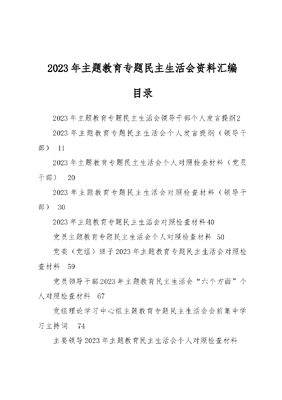 领导干部2023年度主题教育专题民主生活会会前学习研讨发言提纲按照关于开好2023年专题民主生活会的统一部署,近段时间来,我原原本本、逐字逐句学习了党的XX大报告、党章等内容,认真学习了《XXX著作选读》(第一卷、第二卷)《闽山闽水物华新》等重要书籍,再次深刻领悟省市党代会精神,提高认识、统一思想、增强自觉,为开好本次专题民主生活会打牢了坚实的思想基础。现结合工作实际,跟大家做个交流。一、捍卫两个确立是弯道超车的制胜法宝万山磅礴看主峰。党确立XXX同志党中央的核心、全党的核心地位,确立XXX新时代中国特色社会主义思想的指导地位,是历史的选择、时代的选择、人民的选择,既是重大政治成果、历史结论,更是重大政治责任、历史实践。党的十八大以来,正是因为有XXXXXX掌舵领航,有以XXX同志为核心的党中央坚强领导,有XXX新时代中国特色社会主义思想科学指引,我们才能战胜前进道路上的各种风险挑战,推动党和国家事业取得历史性成就、发生历史性变革,实现了第一个百年奋斗目标,在中华大地上全面建成了小康社会,历史性地解决了绝对贫困问题,正在意气风发向着全面建成社会主义现代化强国的第二个百年奋斗目标迈进。作为党员干部,要以开展学习贯彻XXX新时代中国特色社会主义思想主题教育为契机,深刻领悟两个确立对新时代党和国家事业发展、对推进中华民族伟大复兴历史进程具有的决定性意义,不断增强四个意识,坚定四个自信,做到两个维护,切实把XXX新时代中国特色社会主义思想贯彻落实到xx改革发展的全过程、全领域、全方位,广泛凝聚落实xxx建设目标的共识共为,推动XXXXXX为xxx擘画的宏伟蓝图变为美好现实。二、坚持人民至上是直道领跑的不竭动力党的XX大报告以六个坚持对XXX新时代中国特色社会主义思想的世界观和方法论作出系统概括和阐述,并将坚持人民至上作为首要内容。XXXXXX强调:人民群众有着无尽的智慧和力量,只有始终相信人民,紧紧依靠人民,充分调动广大人民的积极性、主动性、创造性,才能凝聚起众志成城的磅礴之力。人民性是马克思主义的本质属性,党的理论是来自人民、为了人民、造福人民的理论,人民的创造性实践是理论创新的不竭源泉党的十八大以来,以XXX同志为核心的党中央始终把人民群众的实践作为智慧和力量的源泉,把政治智慧的增长、执政本领的增强深深扎根于人民的创造性实践之中。前段时间,我们在xx平台上开展网络征求意见活动,一个月时间累计收到xxx万多条网民建言来自四面八方的金点子,通过网络直达市委,成为我们问需于民问计于民的鲜活实践。历史是人民书写的,一切成就归功于人民作为新时代党员干部,我们要始终相信群众、依靠群众,时刻保持同群众的血肉联系,只有同人民群众面对面接触、心与心交融才能真正了解群众所急所需,从而对症下药,为群众办好事、办成事。三、狠抓工作落实是换道冲刺的必由之路一分部署,九分落实。再好的宏伟蓝图,都要靠抓落实来实现。XXXXXX在江苏考察时再次强调重实践抓落实的重要性,明确提出形成狠抓落实的好局面,不折不扣贯彻落实党中央决策部署,积极主动抓落实,聚合众力抓落实,以钉钉子精神抓落实,聚焦实际问题抓落实,在抓落实上取得新实效。这一重要论断对推动学习贯彻XXX新时代中国特色社会主义思想主题教育走深走实提出了新的要求。实践证明,学习的目的在于应用。以学促干,既要学也要干,更要抓落实。只有狠抓落实,才能在推动事业发展上见真章出实效。下一步,我们要聚焦破解难题精准发力。在稳住工业基本盘、扩大有效投资、促进消费、提高财税规模和质量等方面下功夫、出实招,确保实现全年目标任务。要聚焦重点工作持续用力。抓住落实xxx建设目标中具有带动性、引领性的几个重大项目,抓好项目建设、招商引资、乡村振兴、生态环保、安全生产等重点工作,以重点突破之为,带动全局工作上台阶。聚焦明年发展主动加力。把握政策机遇、抓实平台载体,谋划好明年的工作思路、目标任务、重点工作、重大举措,以xxx一域之光为全域添彩,在现代化xxx建设中赢得更大的胜利和荣光。